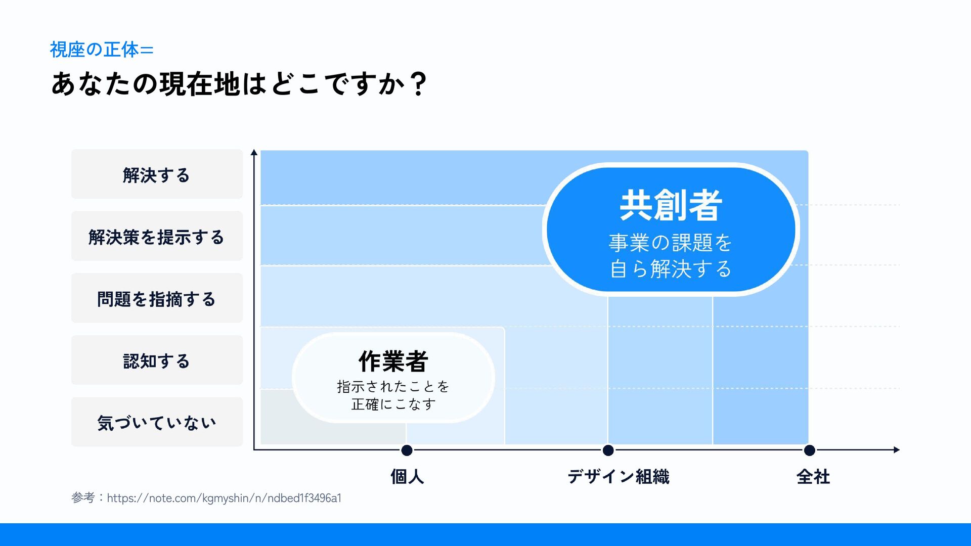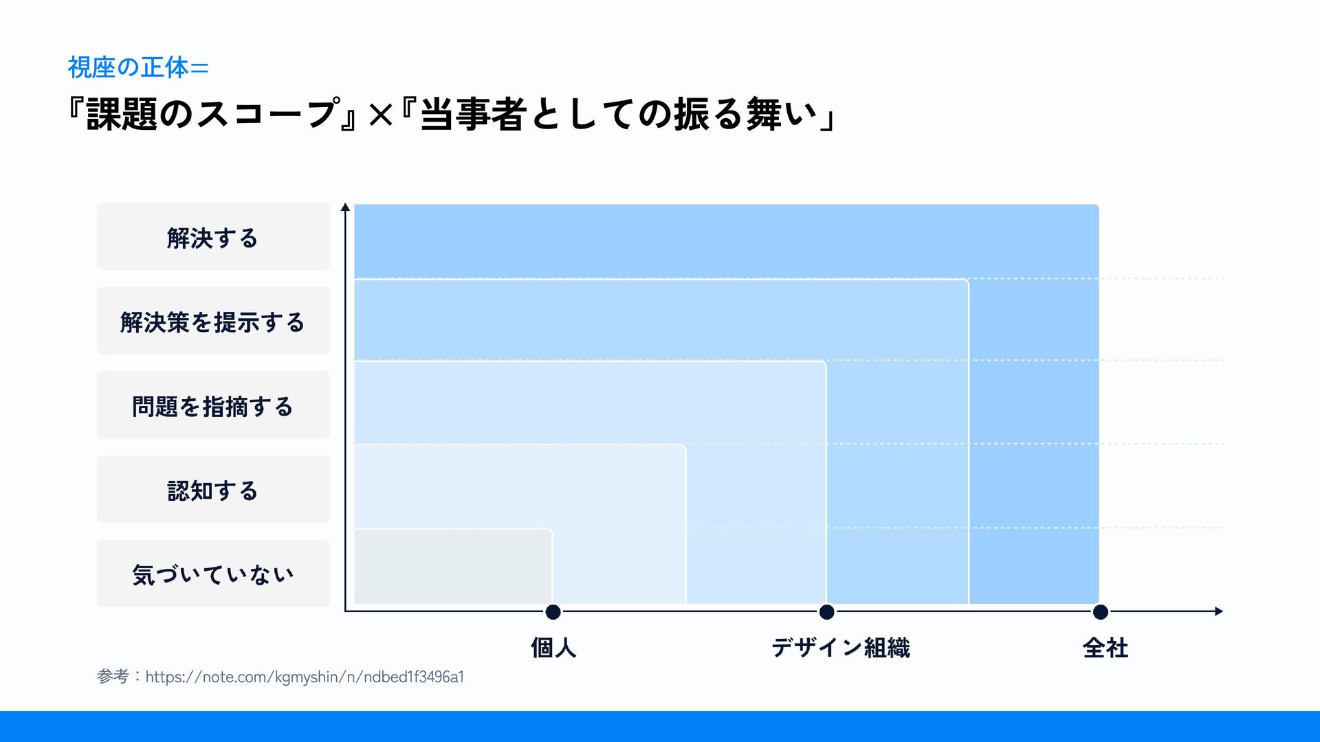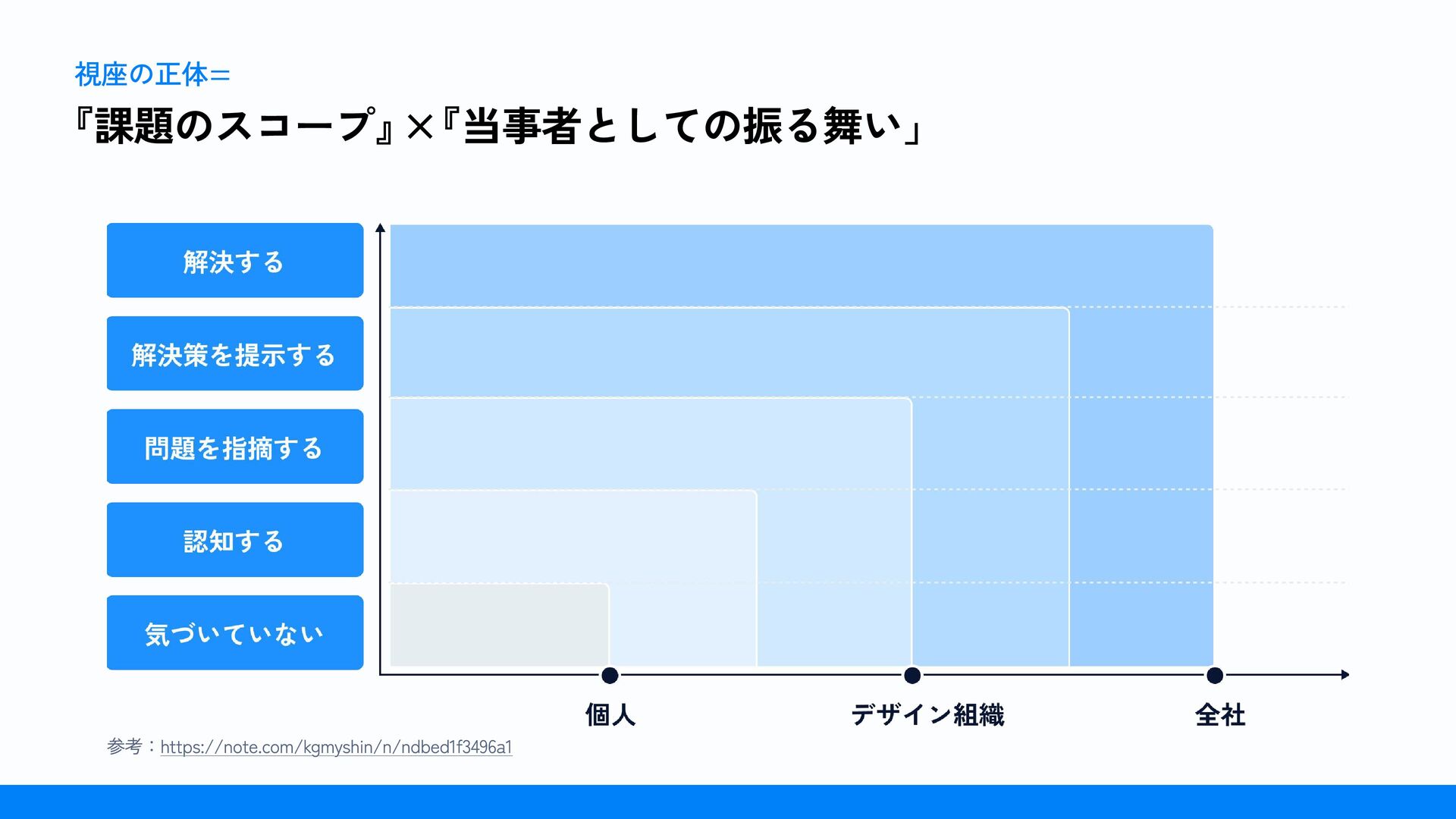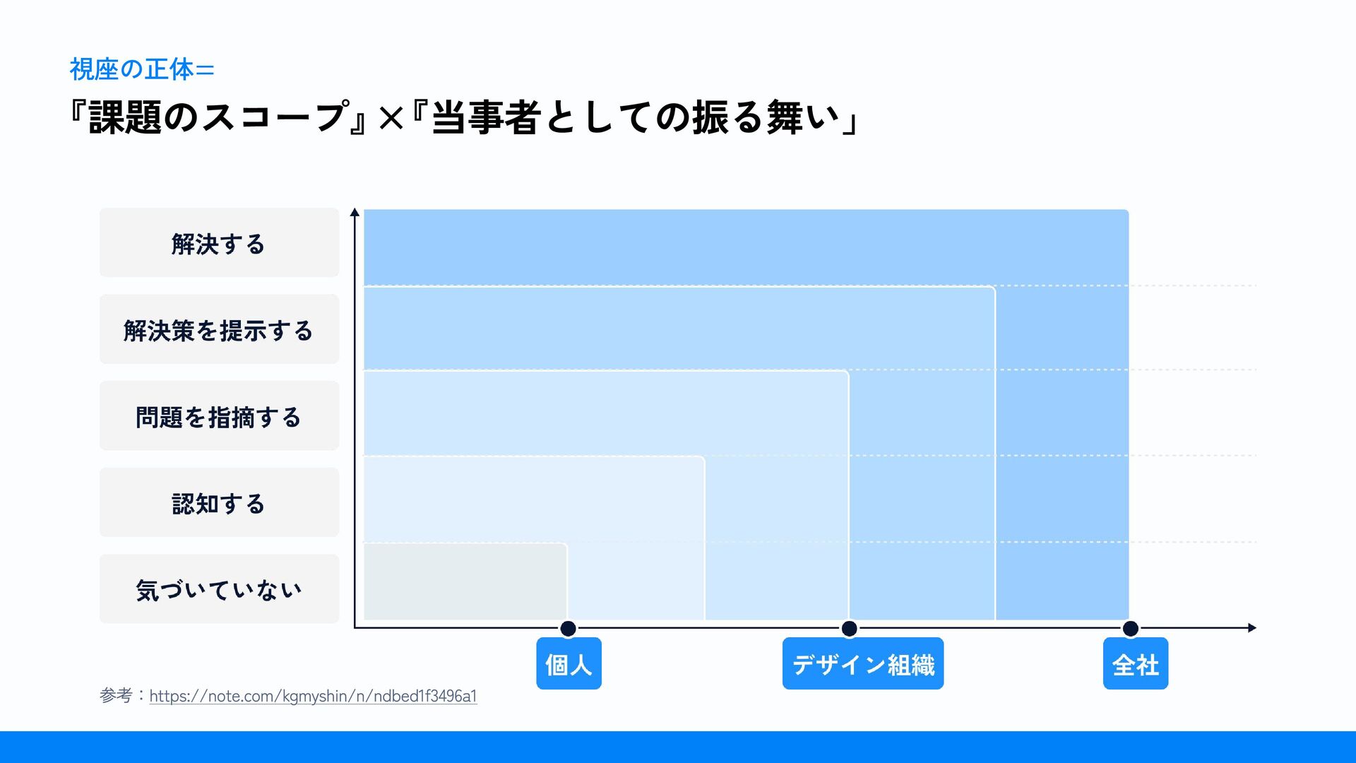 視座の正体= 『課題のスコープ』× 『当事者としての振る舞い」 参考:https://note.com/kgmyshin/n/ndbed1f3496a1