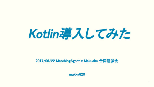 Kotlin導入してみた 2017/06/22 MatchingAgent x Makuake 合同勉強会 1 mukky620