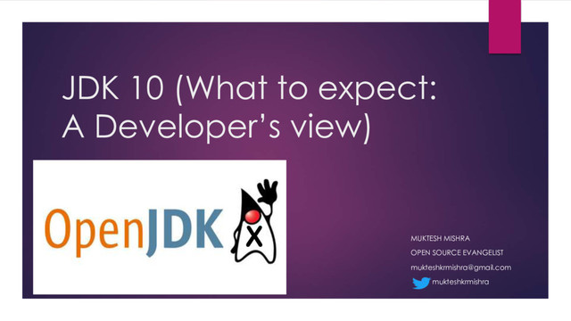 has evolved as an eco system rather than a programming language with usage in light weight systems to doing heavy lifting of batch processing in distributed systems. u We all know Java has gone now into most discussed 6 months release cycles with Java 10 is already knocking the door and Java 11 is getting ready for September release. u Finally, wait is over and Java 10 (JDK10) is scheduled for coming in March for general availability. However as a member of Java review community, I got my hands dirty on early releases (EA). Although there are around 149 JEPs/JSRs are going to be part of JDK 10, however based on my opinion these features are going to be game changers (especially for developers*):