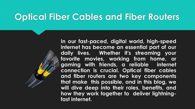 world, high-speed internet has become an essential part of our daily lives. Whether it's streaming your favorite movies, working from home, or gaming with friends, a reliable internet connection is crucial. Optical fiber cables and fiber routers are two key components that make this possible, and in this blog, we will dive deep into their roles, benefits, and how they work together to deliver lightning- fast internet.