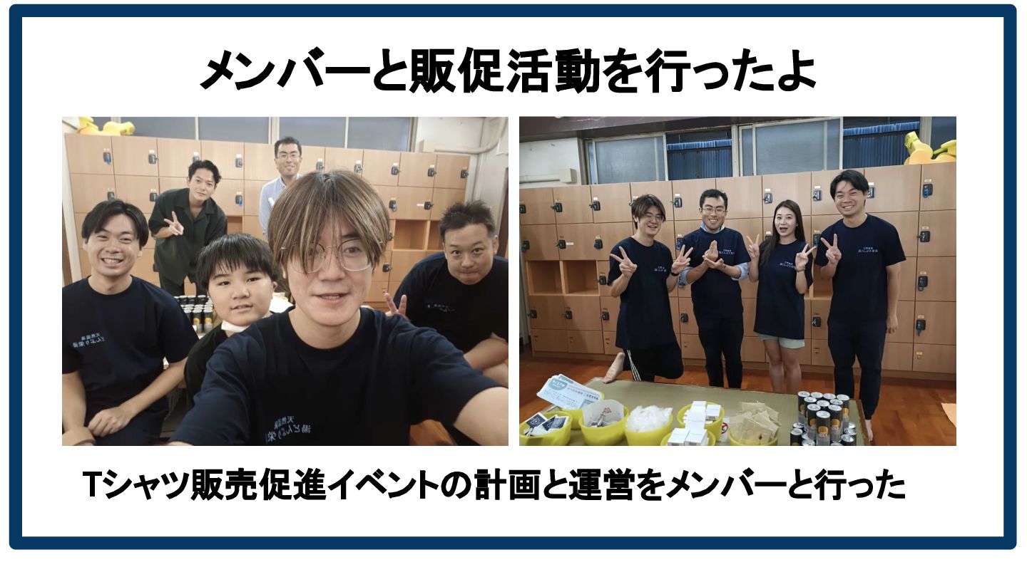 メンバーと販促活動を行ったよ Tシャツ販売促進イベントの計画と運営をメンバーと行った