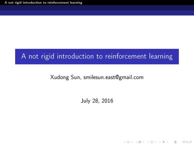 This talk will be a general introduction to reinforcement learning and some working examples to help people understand the basic concepts. It is most suitable to people who have a proper math background and machine learning background but lack some basic knowledge in reinforcement learning.