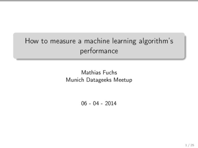 Machine learning has seen an impressing boom in the past years. In practice, every learning algorithm has to prove its worth by better classification/prediction performance than previous algorithms. However, obvious performance measures such as the misclassification rate and so on suffer a high variability across data-sets or even re-sampling iterations. Thus, it is a challenging problem to assess the performance reliably, and its importance has been given surprisingly little attention in literature and practice. I will talk about the usual performance measures such as misclassification rate, AUC or mean squared error etc. I will explain cross-validation and its pitfalls. Finally, I will show you a new method to estimate the variability of the performance estimators in a general and statistically correct way.