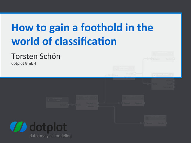 This talk is supposed to serve as a basic introduction to classification. I will explain some common classification algorithms and fundamentals in the field of classification. Before starting to learn a model, it is crucial to explore and understand the underlying data. Based on these findings, proper feature engineering and selection is to be performed in order to get appropriate results. After choosing a model and classifying data instances, we will see different methods of evaluating the results, using techniques like cross-validation. All of this will be demonstrated by analyzing a public data set within a free cloud based data analysis tool called dotplot designer.