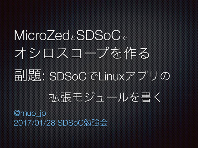 MicroZedͱ SDSoCͰ ΦγϩείʔϓΛ࡞Δ ෭: SDSoCͰLinuxΞϓϦͷ ɹɹɹ֦ுϞδϡʔϧΛॻ͘ @muo_jp 2017/01/28 SDSoCษڧձ