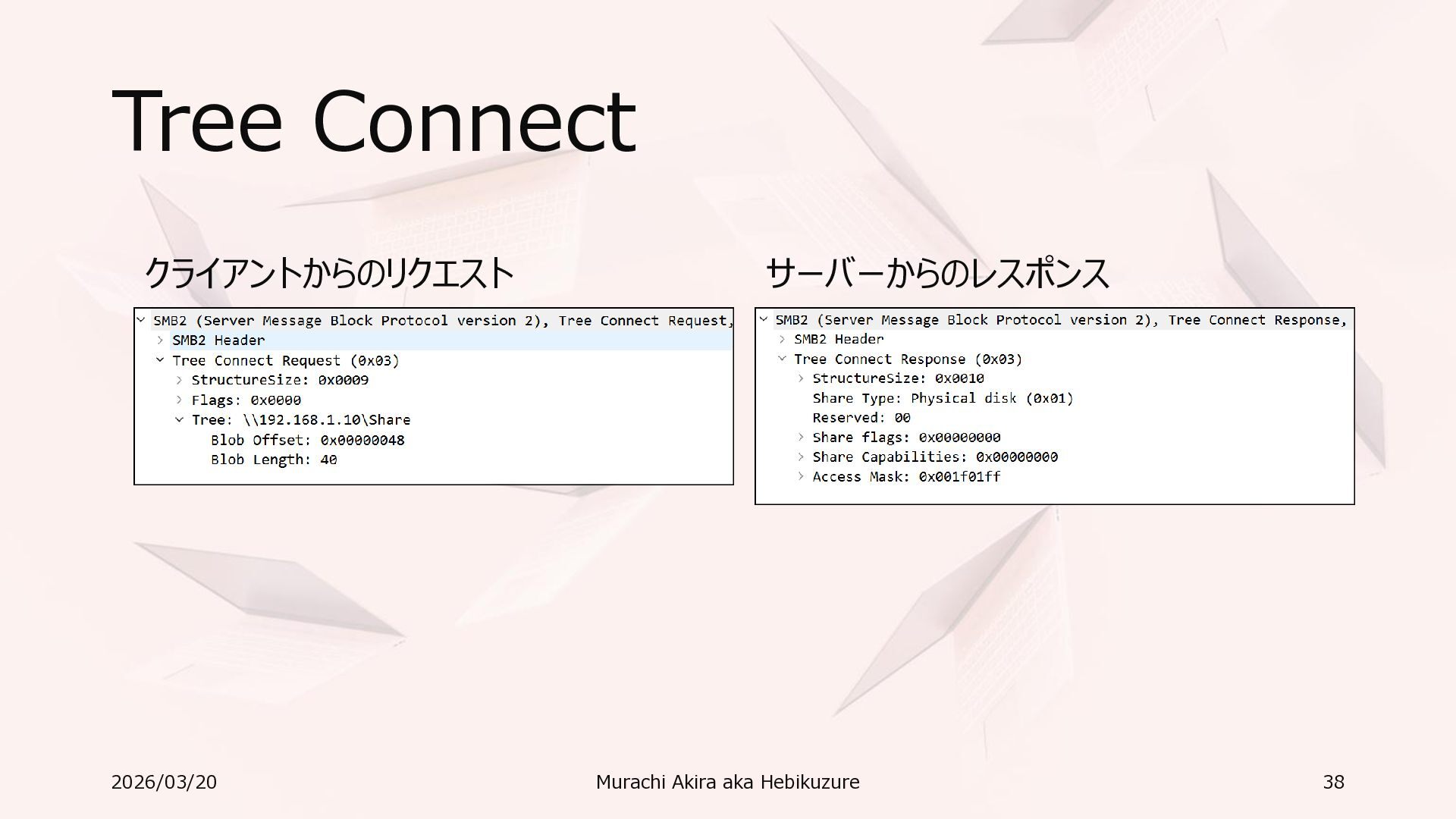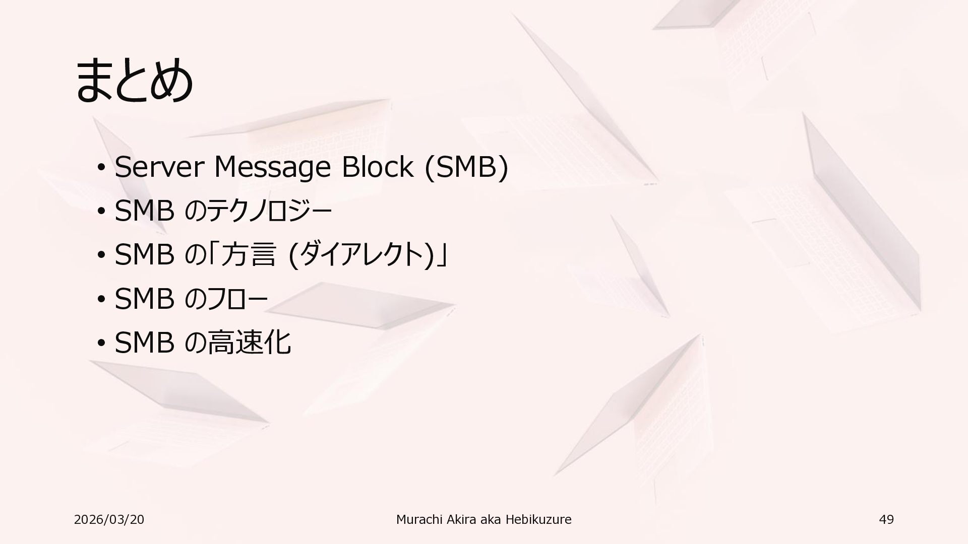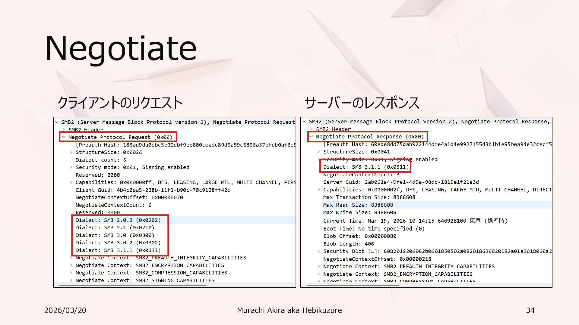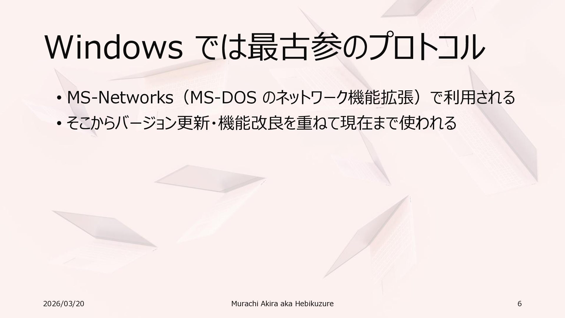 Windows 11 / Windows Server 2022 Azure Edition 以降で利用可能 • オペレーティングシステムのバージョンごとの詳細な機能は以下参照 • Windows および Windows Server の SMB 機能 https://learn.microsoft.com/ja-jp/windows-server/storage/file-server/smb-feature-descriptions 2026/03/20 Murachi Akira aka Hebikuzure 31