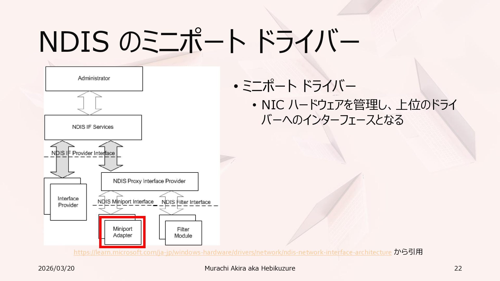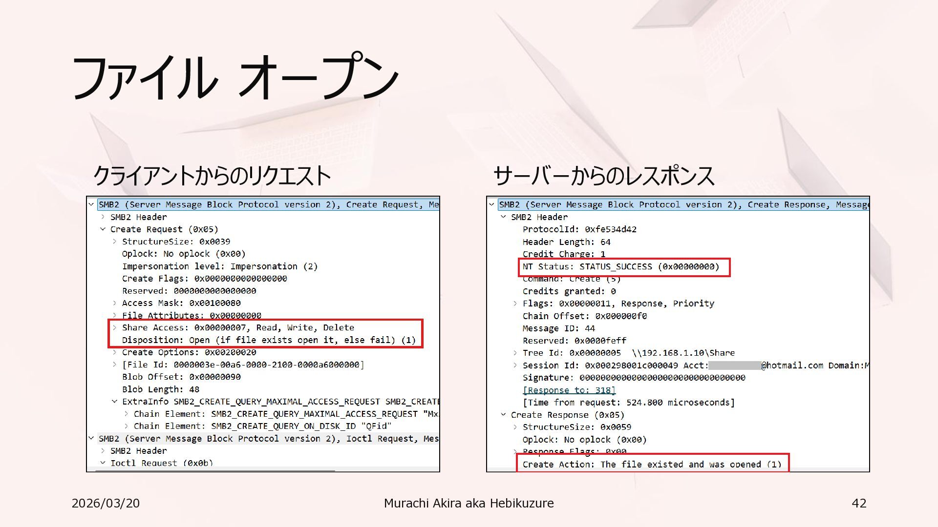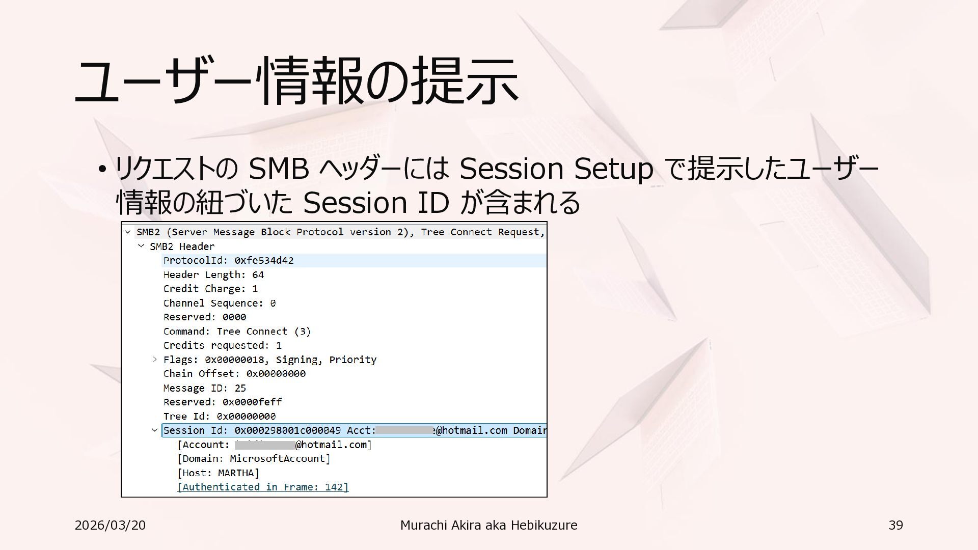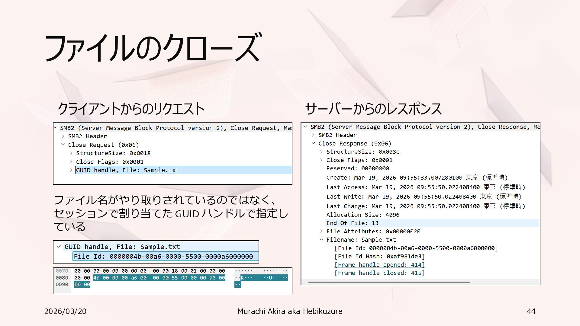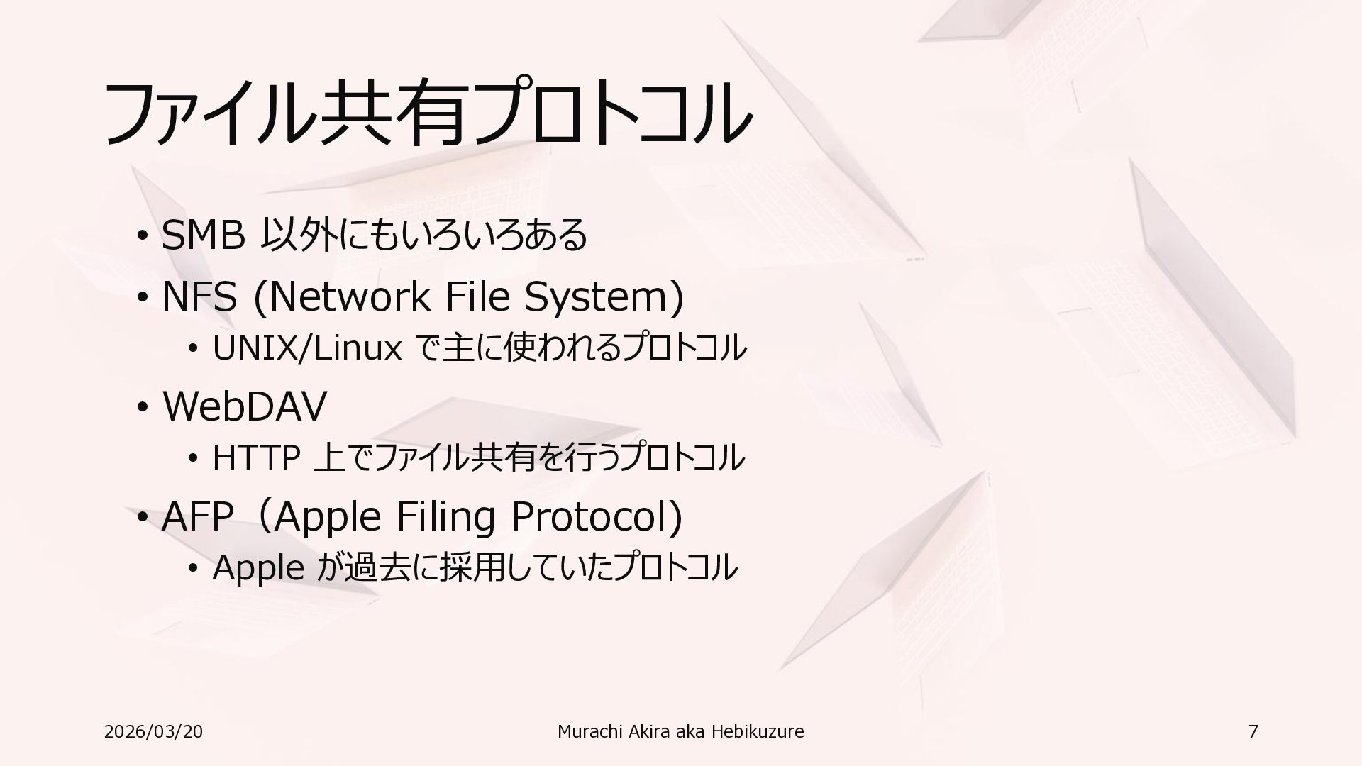 Windows 11 / Windows Server 2022 Azure Edition 以降で利用可能 • オペレーティングシステムのバージョンごとの詳細な機能は以下参照 • Windows および Windows Server の SMB 機能 https://learn.microsoft.com/ja-jp/windows-server/storage/file-server/smb-feature-descriptions 2026/03/20 Murachi Akira aka Hebikuzure 31