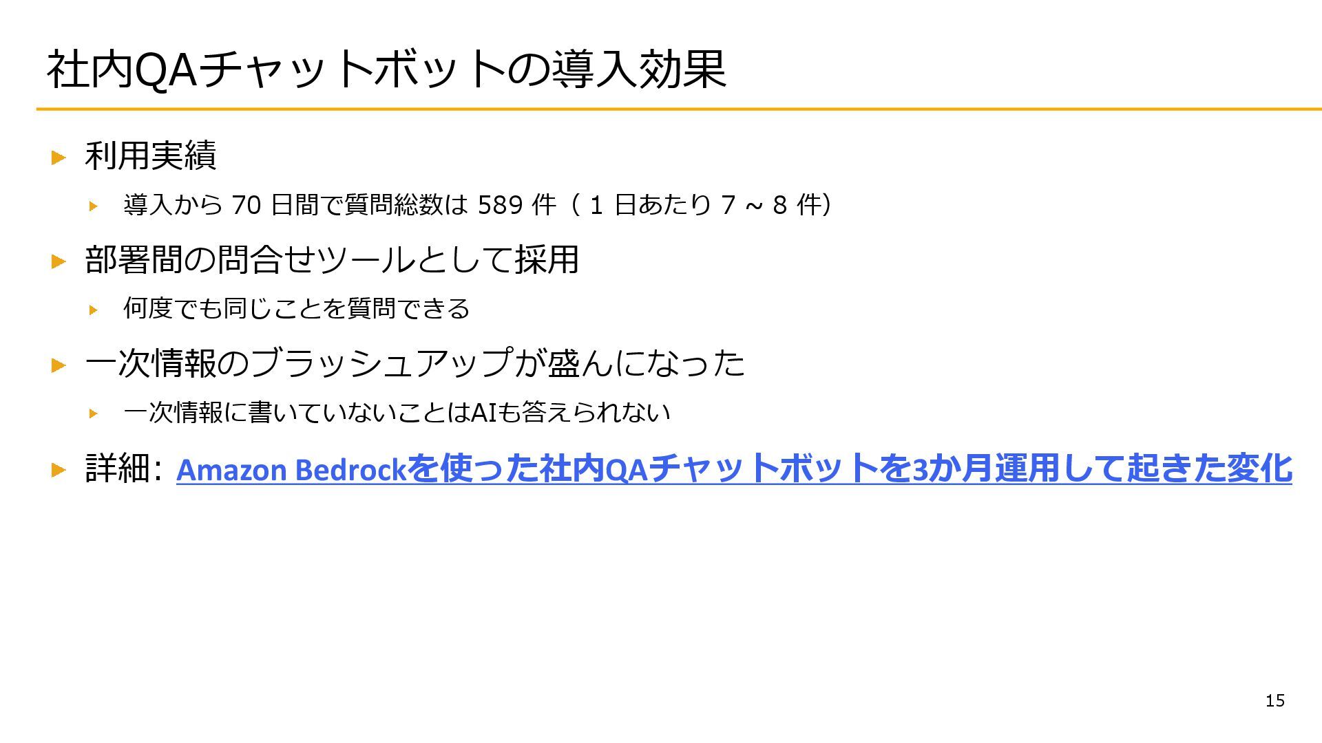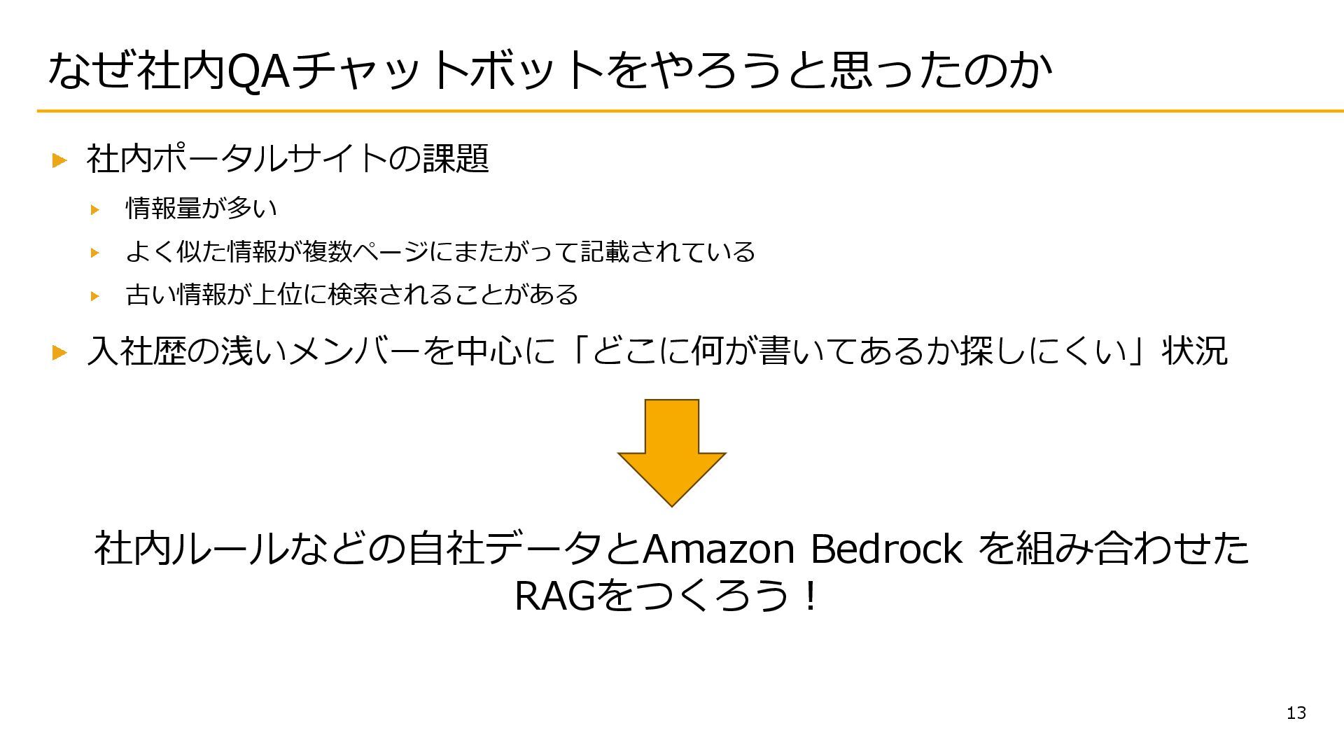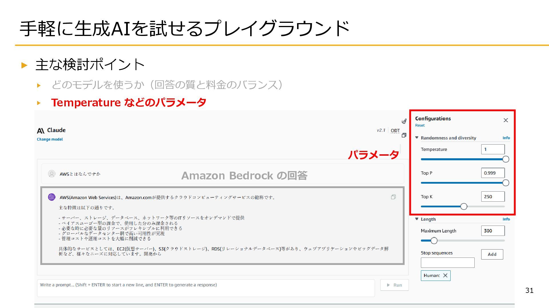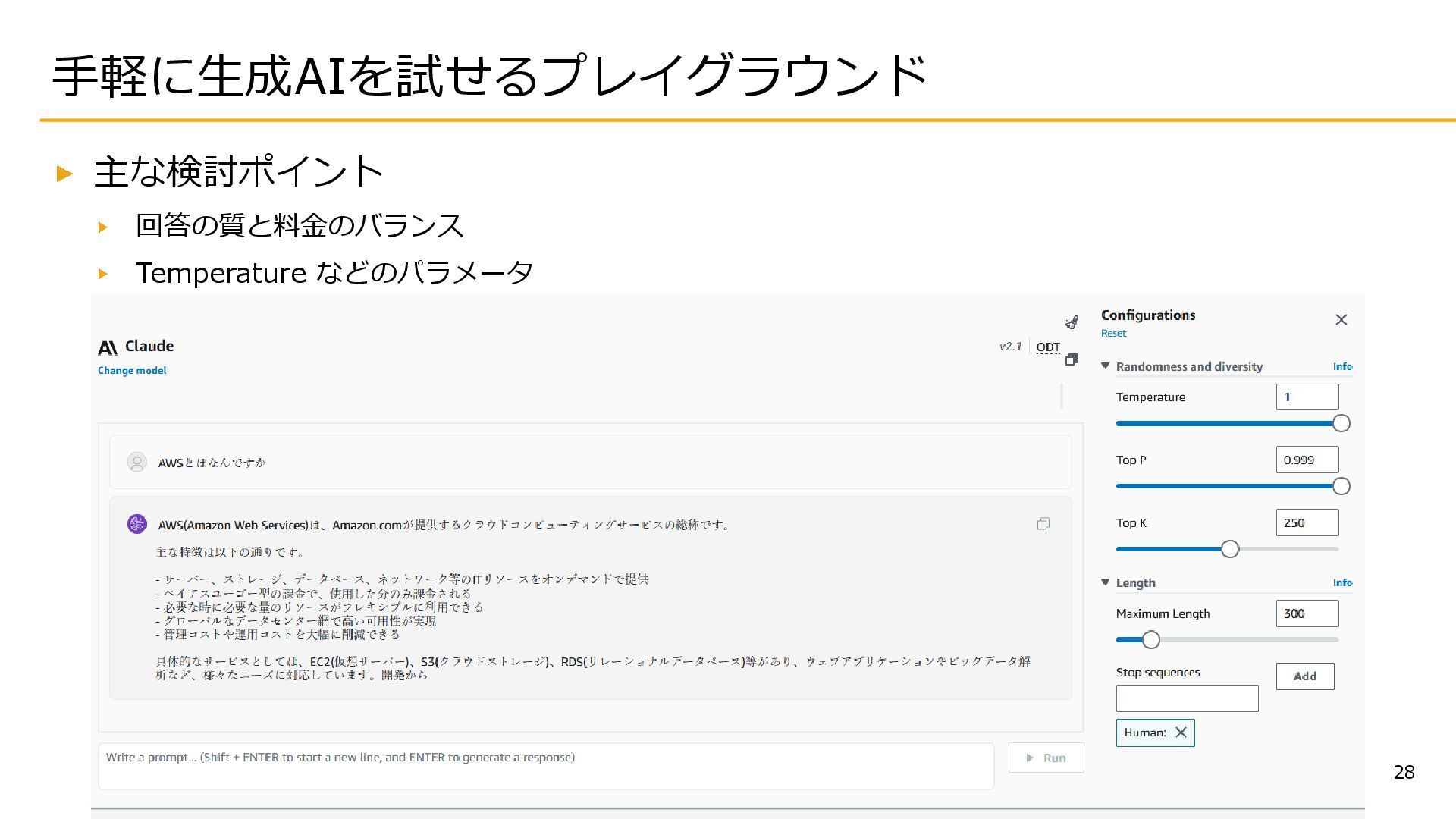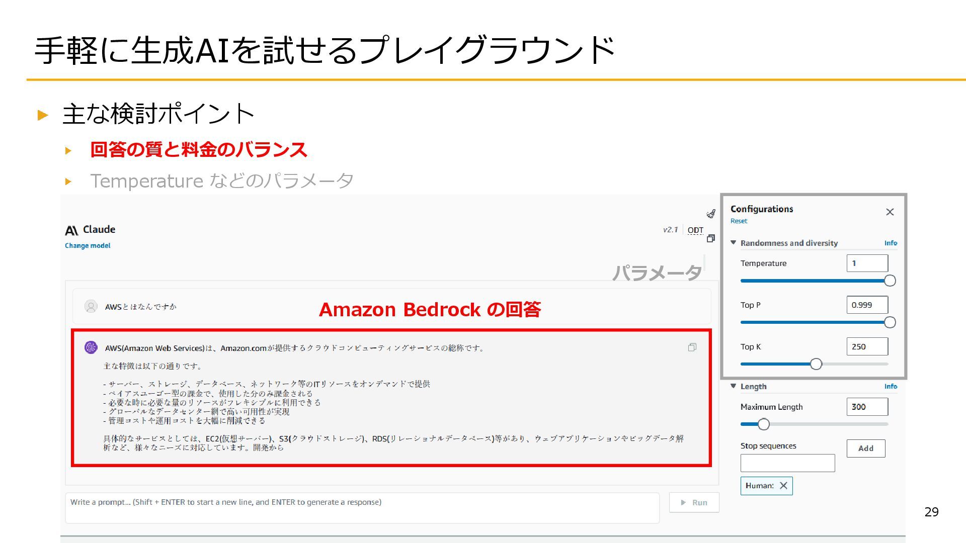 AWS Summit 2024のブースセッションにて登壇した資料です。 ・Amazon Bedrock のご紹介 ・サーバーワークスのRAG運用事例 ・生成AI活用のためのおすすめファーストステップ