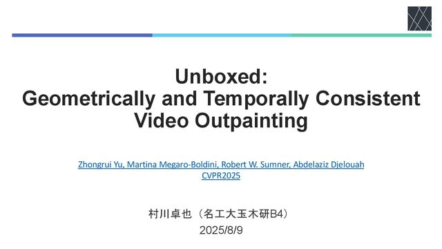 Unboxed: Geometrically and Temporally Consistent Video Outpainting 村川卓也(名工大玉木研B4) 2025/8/9 Zhongrui