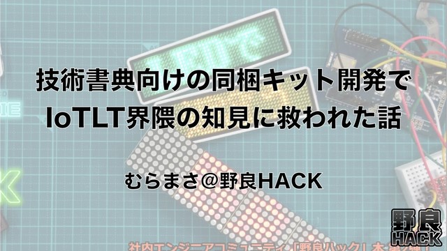 IoT縛りの勉強会!IoTLT Vol.56 @SCSKにて登壇した資料です。 「こんなことやりたいけど実現出来るかな?」といった疑問の技術的な疑問は調べるとだいたいIoTLT界隈の人たちが解決してたりするってお話と、我々 野良HACK が開発したBLE対応LEDバッジ「野良バッジ」初号機とその開発に関するあれこれを書いた技術同人誌の宣伝的なお話をしています。