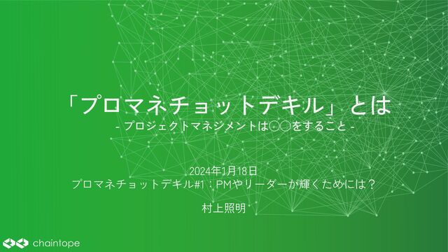 「プロマネチョットデキル」とは - プロジェクトマネジメントは◯◯をすること - 2024年1月18日 プロマネチョットデキル#1:PMやリーダーが輝くためには? 村上照明