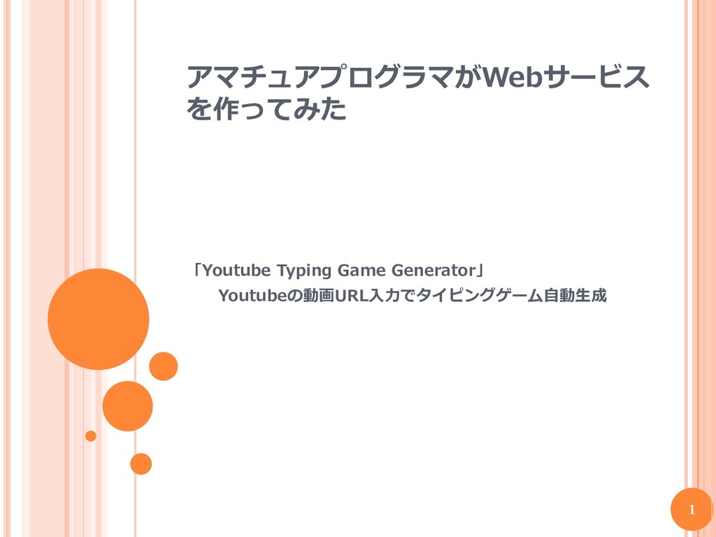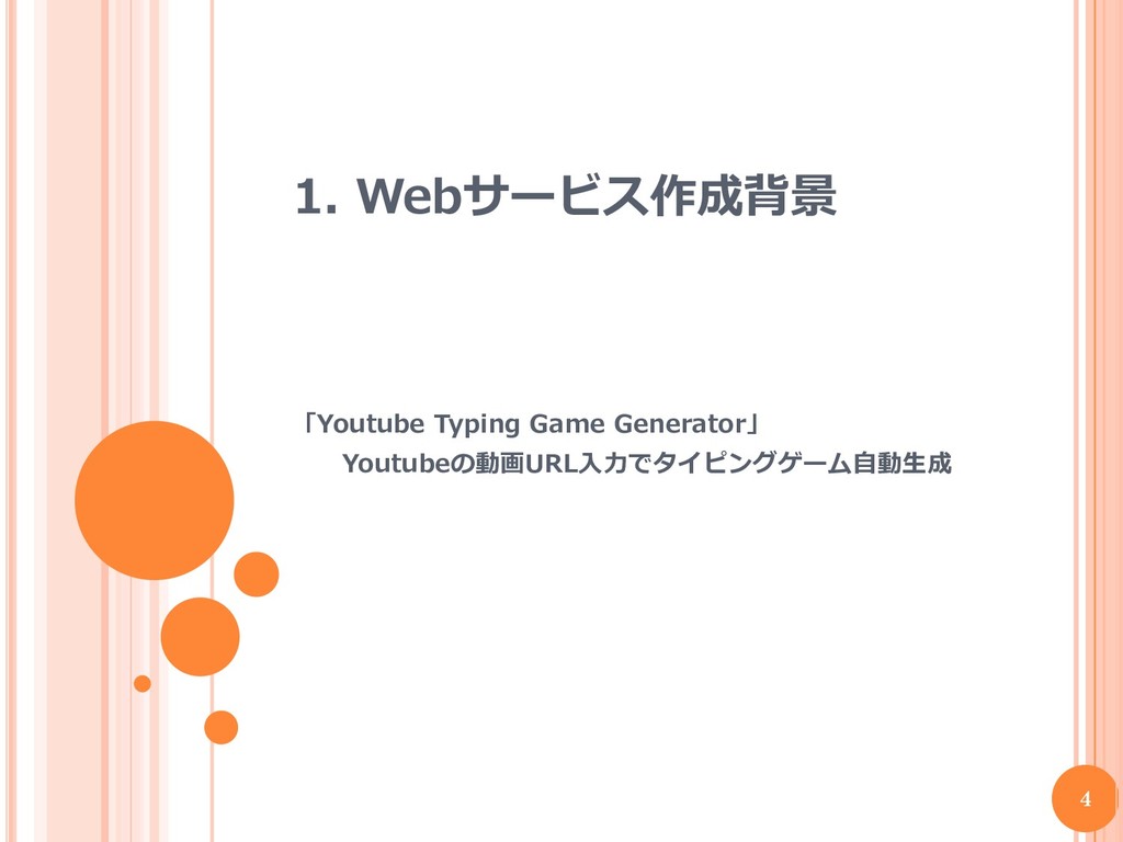 1. Webサービス作成背景 「Youtube Typing Game Generator」 Youtubeの動画URL入力でタイピングゲーム自動生成 4