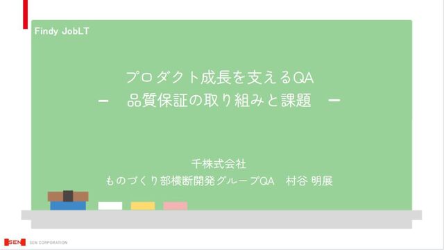 Findy JobLT プロダクト成長を支えるQA - 品質保証の取り組みと課題 ー 千株式会社 ものづくり部横断開発グループQA 村谷 明展 Findy JobLT