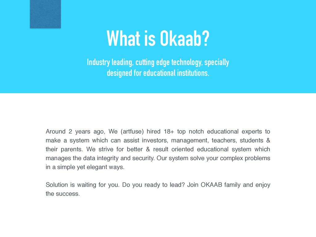 Around 2 years ago, We (artfuse.co.uk) hired 18+ top notch educational experts to make a system which can assist investors, management, teachers, students & their parents. We strive for better & result oriented educational system which manages the data integrity and security. Our system solve your complex problems in a simple yet elegant ways.
