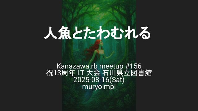 人魚とたわむれる Kanazawa.rb meetup #156 祝13周年 LT 大会 石川県立図書館 2025-08-16(Sat) muryoimpl