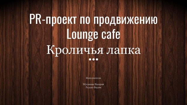 организации досуга. Задачи : 1. Информировать потенциальных потребителей о создании нового кафе 2. Обеспечить осведомленность о предлагаемых услугах 3. Сформировать доверие целевой аудитории 4. Создать положительный имидж нового кафе 5. Увеличение рыночной доли 6. Создание перспективных отношений со СМИ 7. Привлечение в штат инициативных и ответственных сотрудников