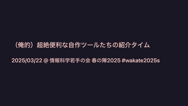 (俺的)超絶便利な自作ツールたちの紹介タイム 2025/03/22 @ 情報科学若手の会 春の陣2025 #wakate2025s