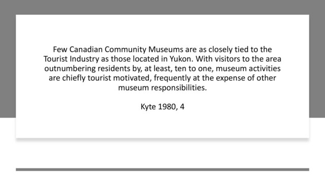 Days and Doors Open] that can spur visitors to seek out Yukon as a destination. Once they have arrived, there are opportunities to experience its rich culture, arts, heritage, and natural attractions and visitors return home with stories rooted through their travels to community museums, visitor centres, the Yukon Archives, Yukon historic sites and attractions, cultural events or activities. YLA Minutes