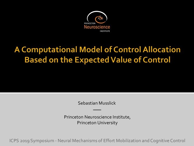 0 “red” “green” accumulated evidence Control Implementation Musslick, Shenhav, Botvinick & Cohen (2015, RLDM) !WORD = 0 !COLOR = 15 t 0 2. Compute Expected Value of Control (EVC) 1. Simulate performance Control Allocation &'()*'*+,-,./+ 0/1,(!) ! 4*5/+6.7!8-,./+ 0/1,(!) 9! + ;<= !, ? @+A = B(0/88*5,| ? @+A, D) · 4*F-8G − 0/1,(D)