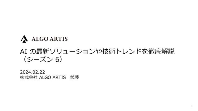 2024年2月19日〜2月22日 福岡で開催された「Industry Co-Creation (ICC) サミット FUKUOKA 2024」における「AI の最新ソリューションや技術トレンドを徹底解説 (シーズン 6)」での登壇資料です。