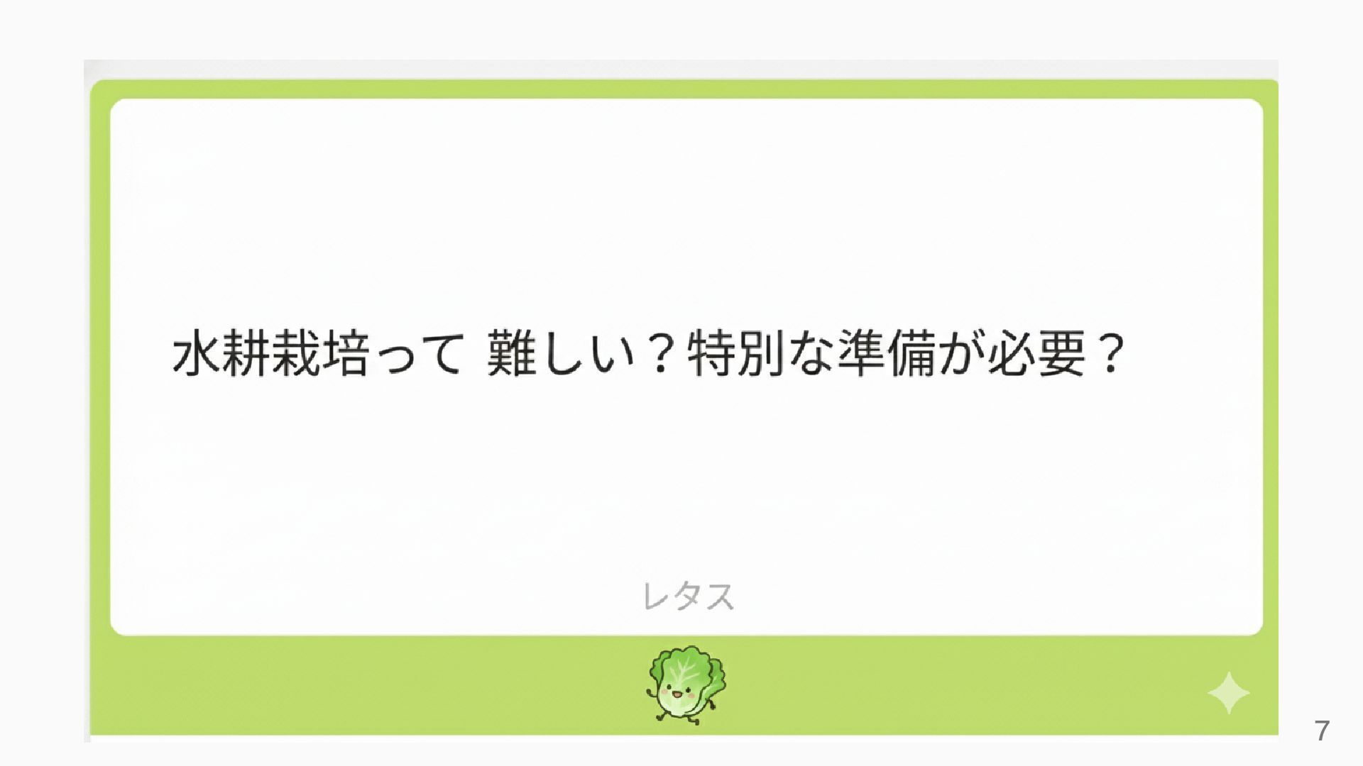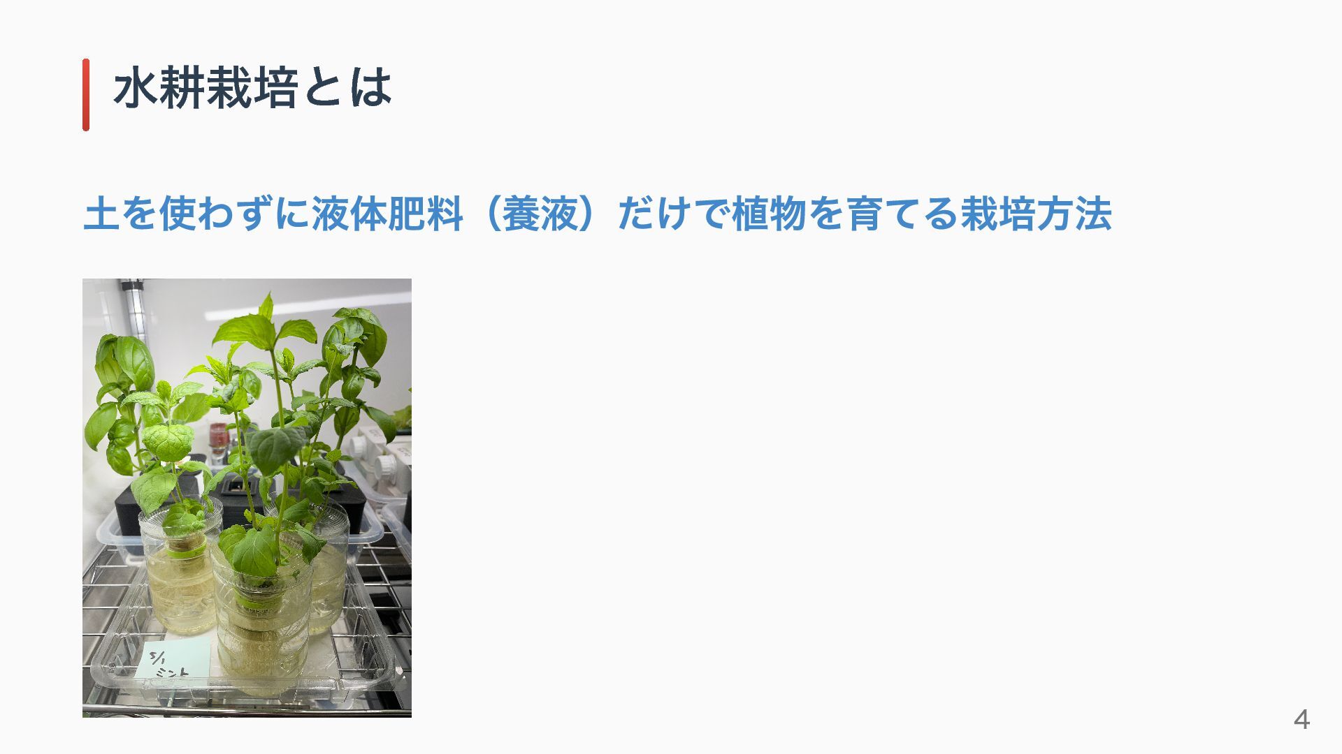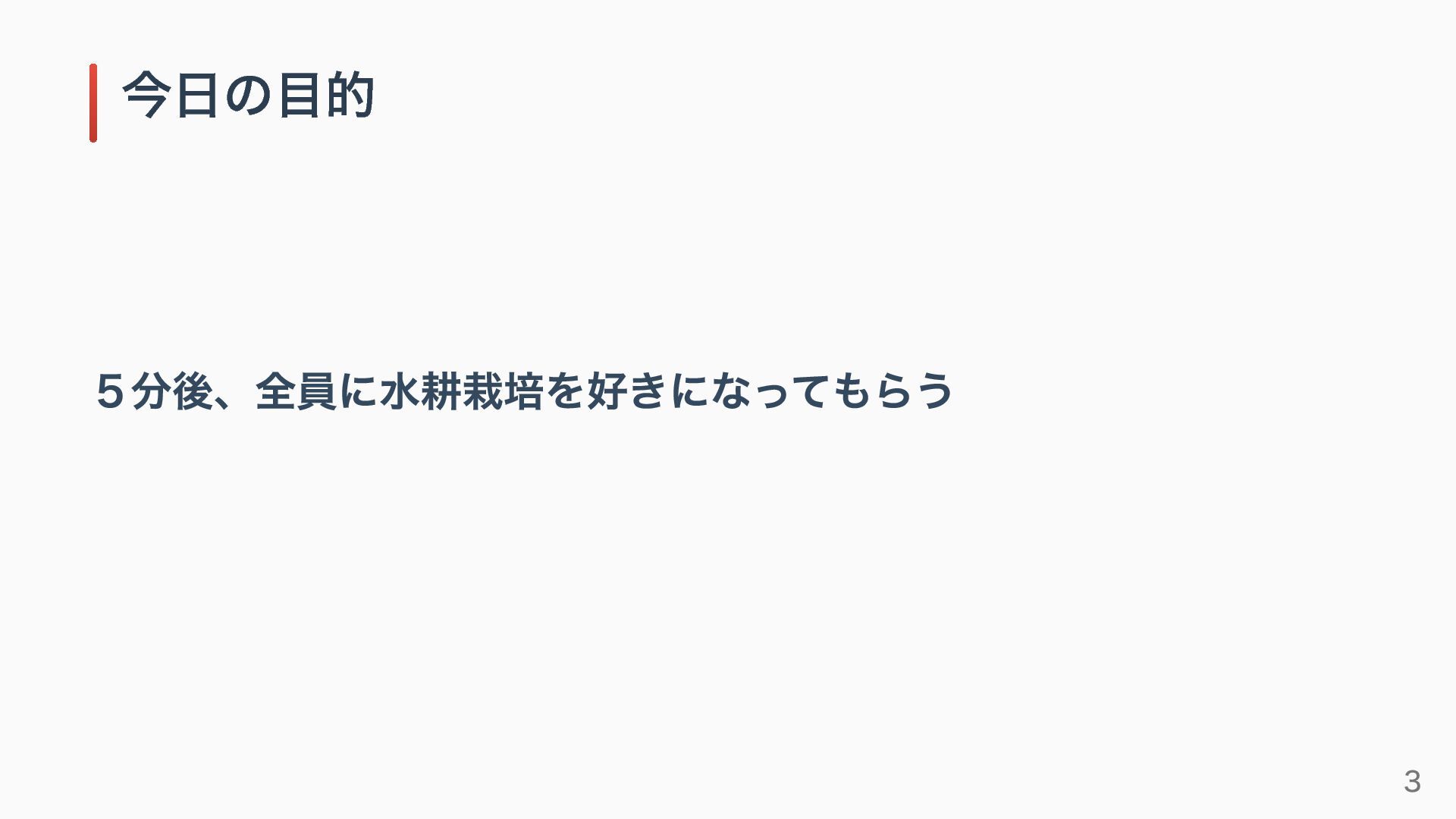 5分後、全員に水耕栽培を好きになってもらう 今日の目的 3