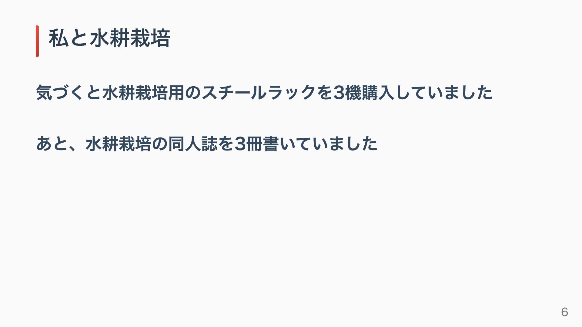 気づくと水耕栽培用のスチールラックを3機購入していました あと、水耕栽培の同人誌を3冊書いていました 私と水耕栽培 6