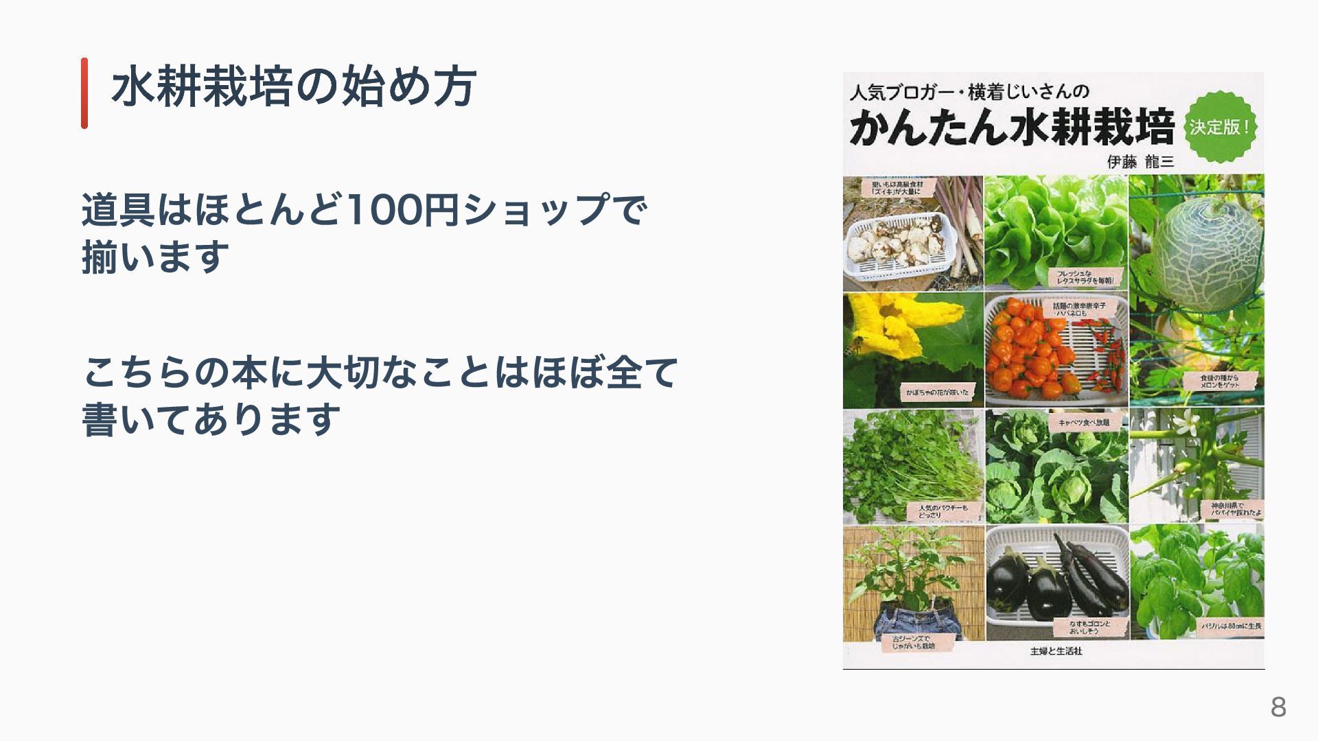 道具はほとんど100円ショップで 揃います こちらの本に大切なことはほぼ全て 書いてあります 水耕栽培の始め方 8