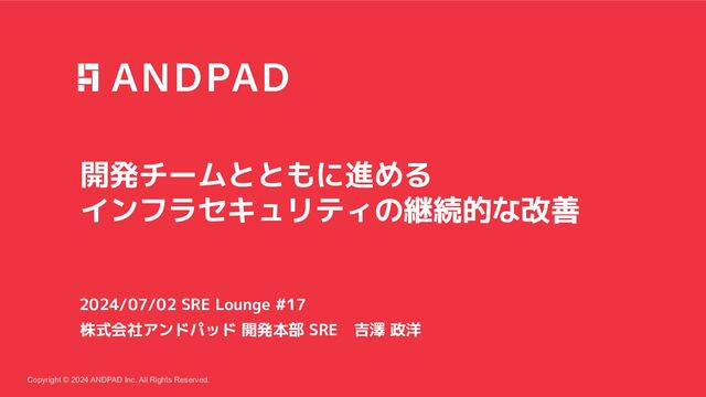 2024年7月2日に開催された SRE Lounge #17 の発表資料です。