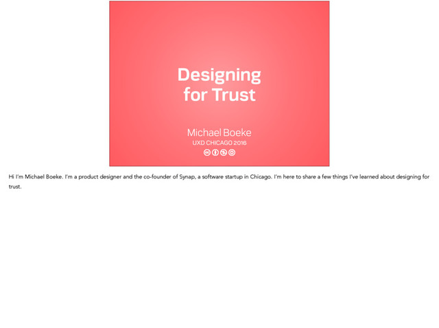 (Full slides, without notes, are available at https://speakerdeck.com/mvboeke/designing-for-trust/)