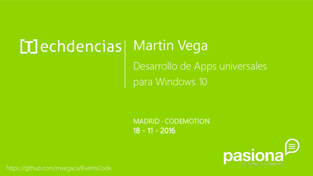 Vamos a desarrollar desde cero una App Universal de Windows 10 aprovechando controles XAML gratuitos y alojados en GitHub por Microsoft. Empezaremos creando desde cero un proyecto UWP con Visual Studio 2015 y en el tiempo que dura el taller implementaremos una petición a servicios de datos en C# que consumiremos desde la App utilizando diferentes controles XAML responsive. El código estará disponible al terminar la charla en un repositorio GitHub.