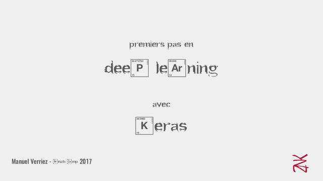 # output shape: (samples, 64) question_encoder = Sequential() question_encoder.add(Embedding(input_dim=vocab_size, output_dim=64)) question_encoder.add(LSTM(64, return_sequences=False)) # output shape: (samples, 64) model = Sequential() model.add(Merge([input_encoder, question_encoder], mode='concat',concat_axis=-1)) # output shape: (samples, 64*2) model.add(Dense(vocab_size)) model.add(Activation('softmax')) # output a probability distribution over all words model.compile(optimizer='adam', loss='categorical_crossentropy') print 'Training - reporting test accuracy after every iterations over the training data...' model.fit([inputs_train, queries_train], answers_train, batch_size=32, nb_epoch=50, show_accuracy=True, validation_data=([inputs_test, queries_test], answers_test)) Startup.ML Deep Learning Conference: François Chollet on Keras https://bitbucket.org/fchollet/keras_workshop