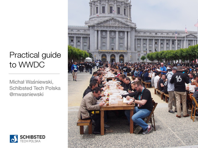 A presentation based on my experience with 2016 WWDC edition. A bunch of practical information for those who consider attending! The presentation was published during Cocoaheads Tricity meetup in Gdańsk, Poland.