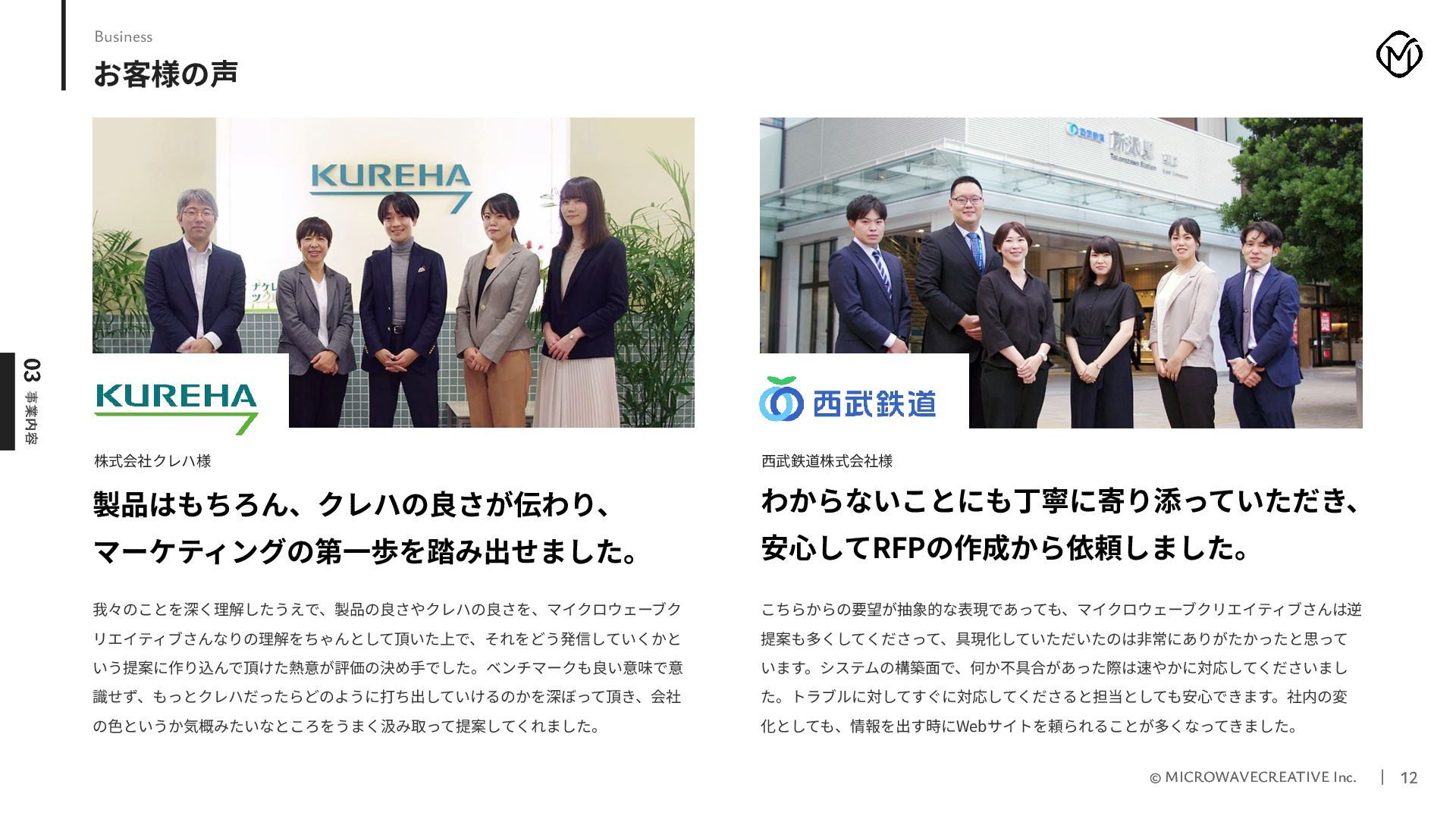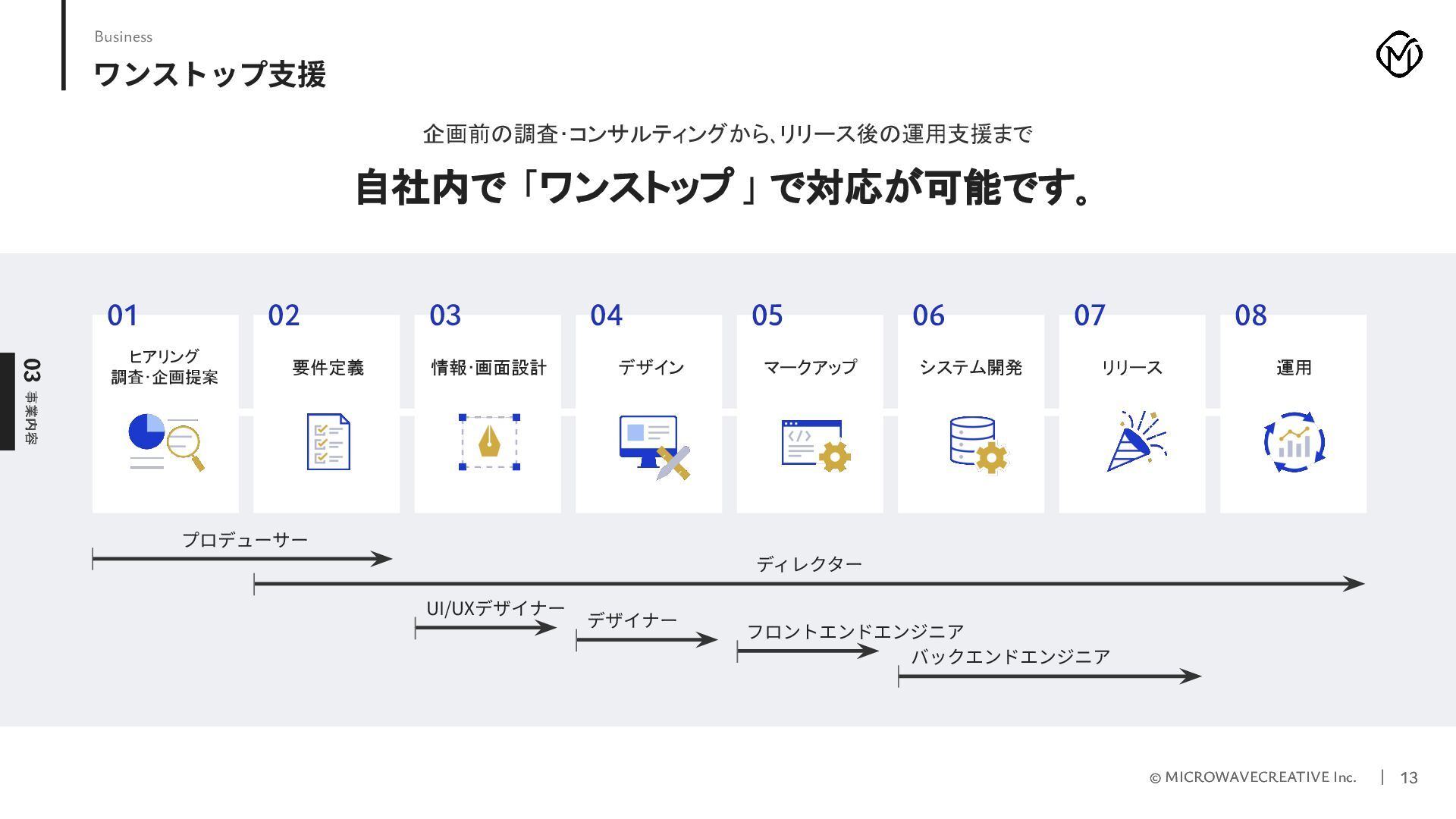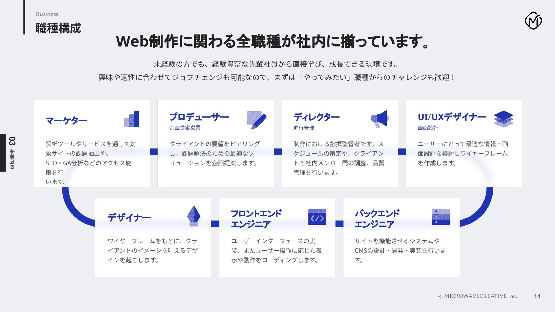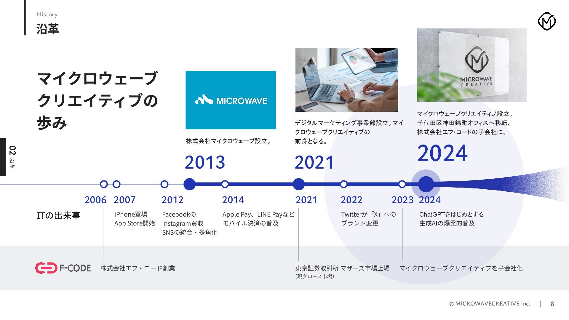 株式会社マイクロウェーブクリエイティブの採用ピッチ資料です。 私たちはWeb黎明期から25年以上にわたり、1,000サイト以上のデジタル戦略・制作を支援してきたクリエイティブ集団です。