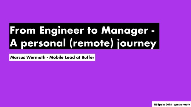 I am going to talk about my own story of how I became the Mobile Lead at Buffer and how it is to change perspective and not code anymore, but rather help other to code better and build great products.