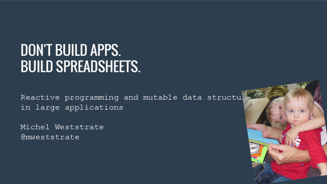 The ability to express essential complexity in a simple way is crucial for any code-base. At Mendix we did an interesting discovery during the development of a complex MDD tool. React, mutable data structures and transparent reactive programming are a match made in heaven. We published a library that leverages these concepts; MobX. It helps you to write simple, declarative, yet highly efficient code. Your future code maintainers will love you for applying it.
