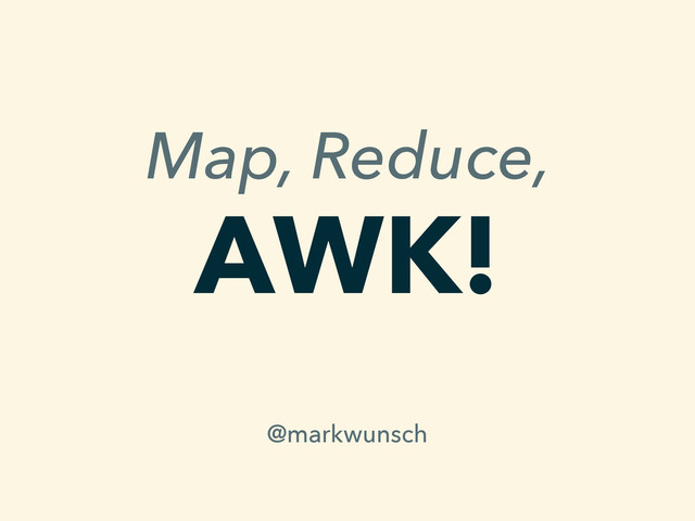 "Is my data Big enough for Hadoop?" If you're asking, then probably not! Instead, try AWK. It's on your computer, it's easy to use, and you can do a whole lot with it. This talk will (re-)introduce you to AWK, the best little stream processor you could ever ask for. Learn how to map or reduce or both with Unix tools that have existed in one form or another since the 1970s. Don't be ashamed of your small-to-medium data — embrace it with AWK!