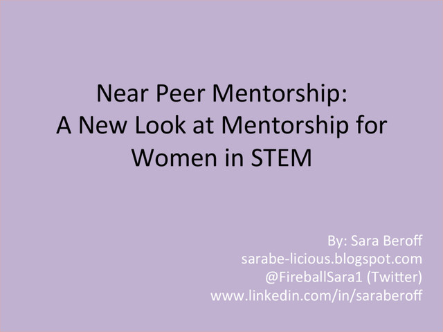Re-examining the construct and context of near peer relationships for women in STEM to create more welcoming communities. Using my journey to STEM from the arts as a framework this is how I came to build a supportive community for myself with tools for others to do the same.