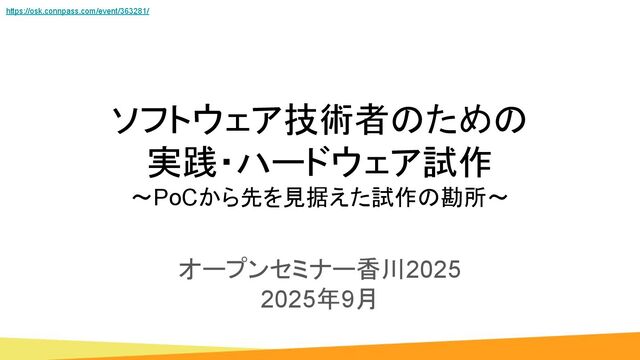 本発表では、産業向け装置(Factory Automation)分野での経験を踏まえ、PoCから一歩先を見据えた、ハードウェア試作における要点を紹介します。