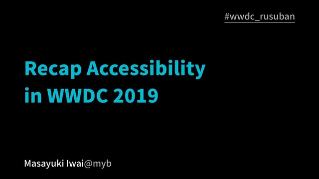 Recap Accessibility in WWDC 2019 Masayuki Iwai@myb #wwdc_rusuban