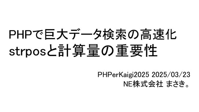 本トークでは、私たちのプロジェクトで直面した「strposによる文字列検索が原因で処理が30秒以上かかった」事例をもとに、計算量の重要性とパフォーマンス最適化についてお話しします。