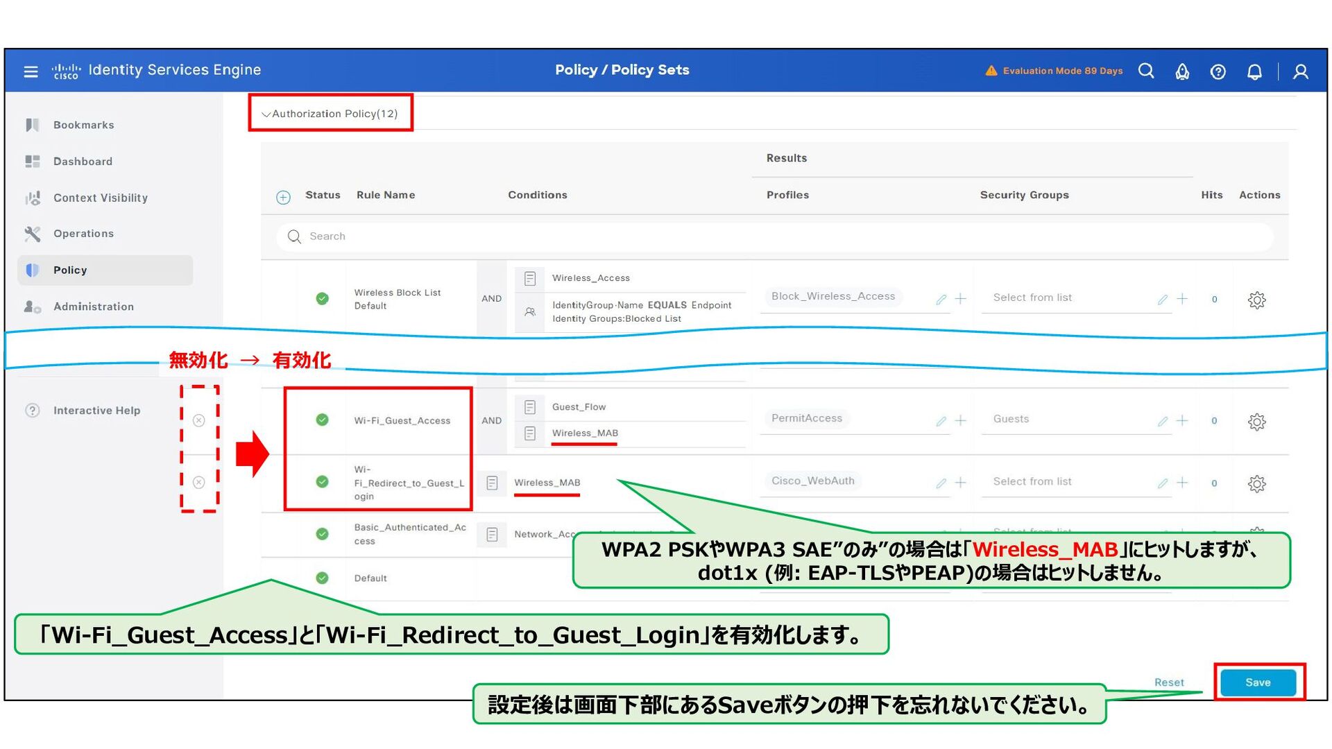 SSID, FlexConnect local switching traffic is randomly getting centralized • https://bst.cisco.com/quickview/bug/CSCwn17412 • 該当Version: v17.9.6, v17.15.2 • 条件: 「Web Authを利用しているSSID」と「FlexConnect Local Switchingを利用」していると、ランダ ムに通信がCentral Switchingに切り替わってしまい、通信が途切れてしまう事象です。 • Wireless TAC Timeで紹介されています。 • [録画公開] 12/18 開催 Wireless TAC Time - 今すぐ現場に効く Tips 紹介 - - Cisco Community • https://community.cisco.com/t5/-/-/ba-p/5238325 • 動画の解説は「43:20」付近です。