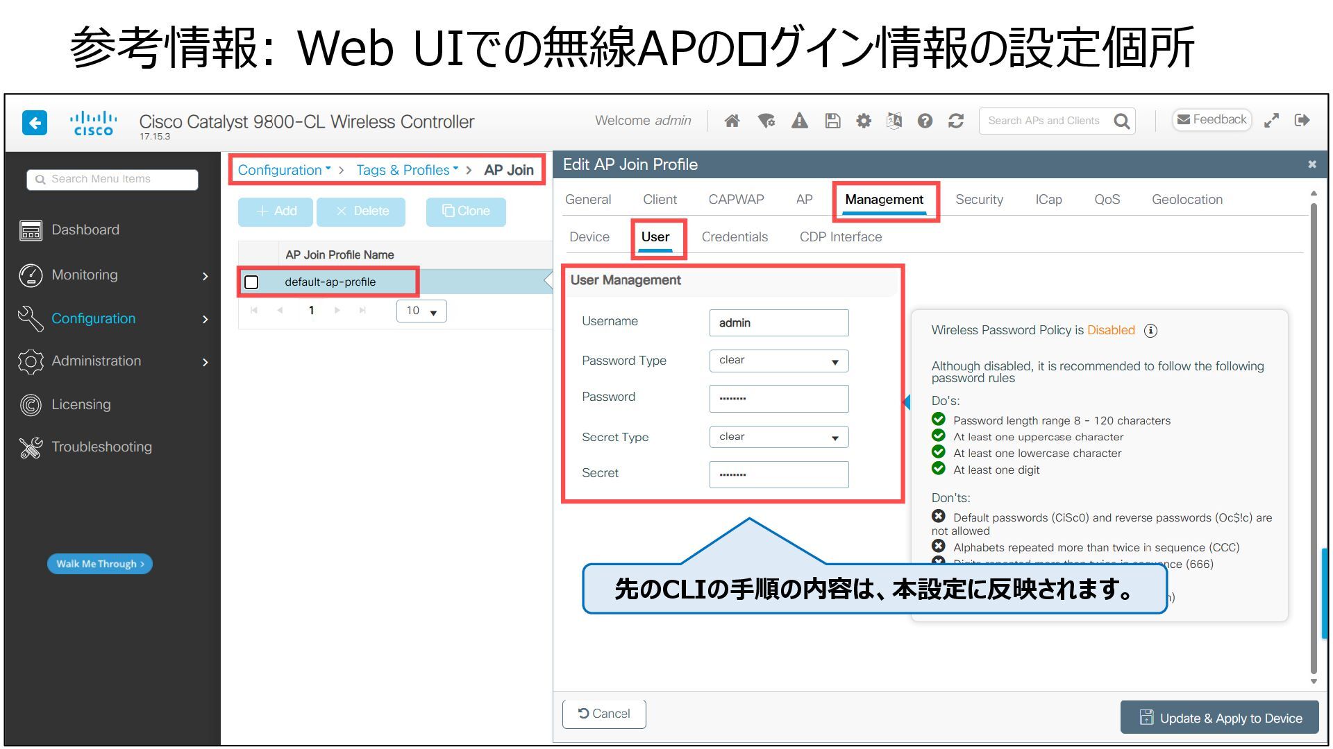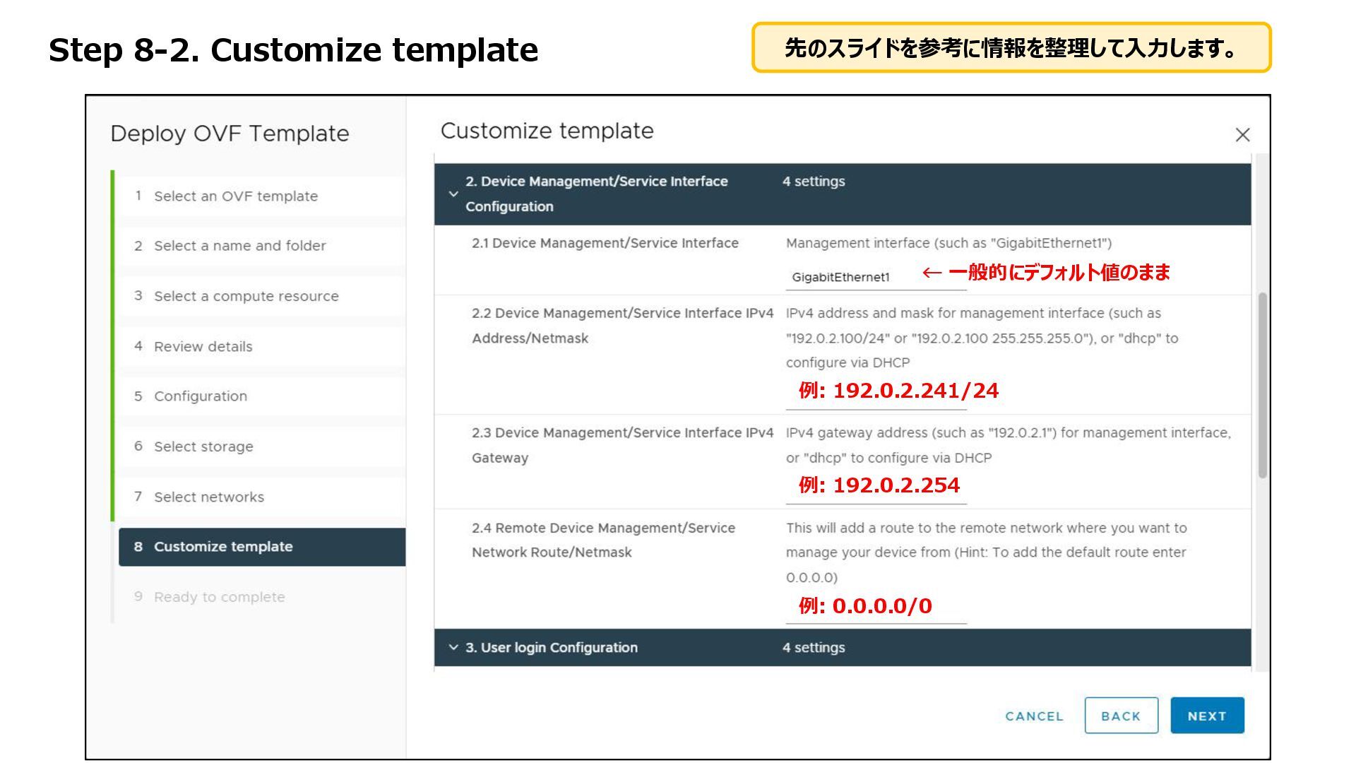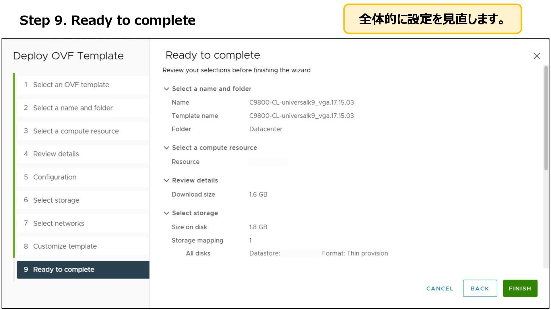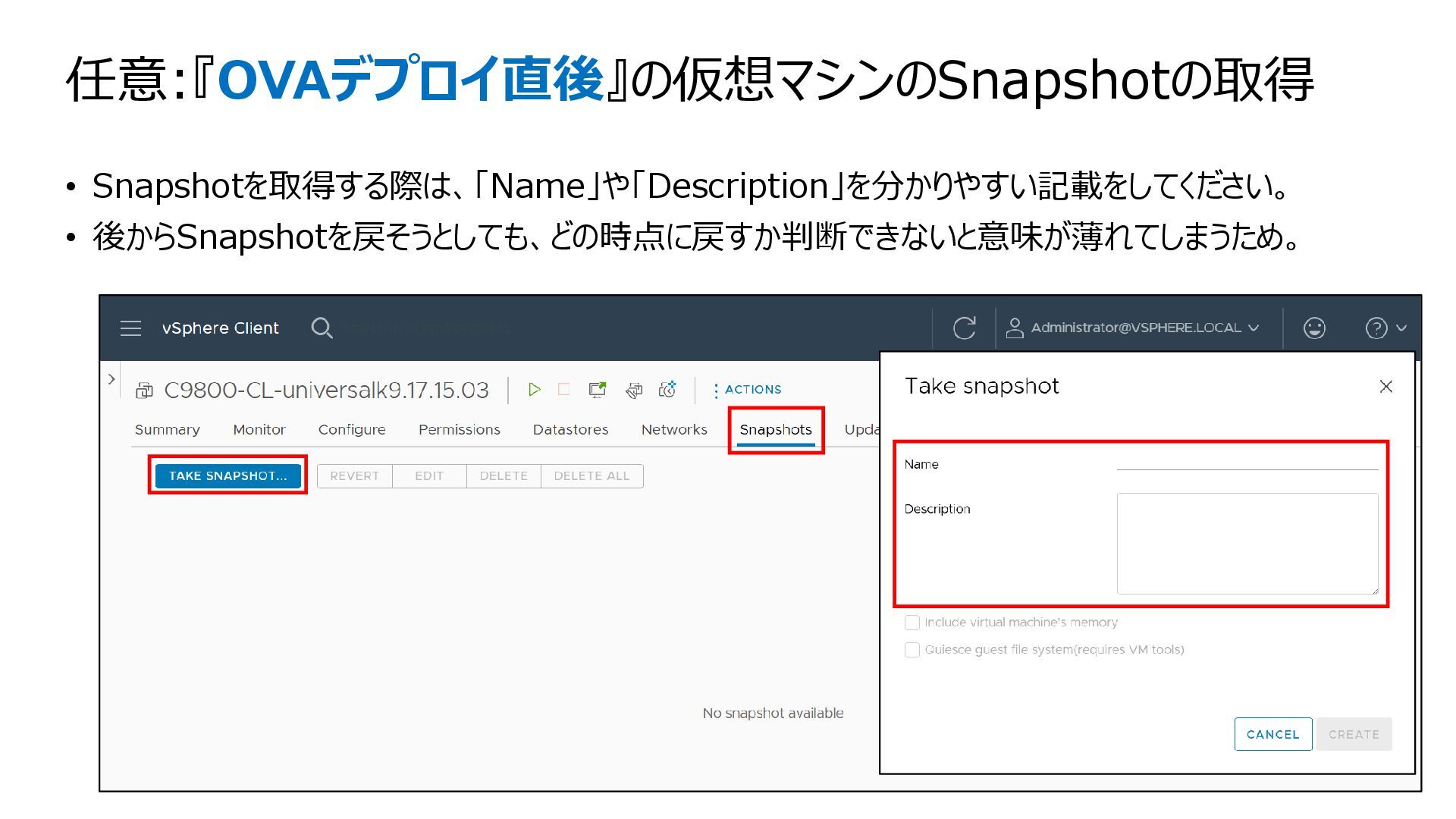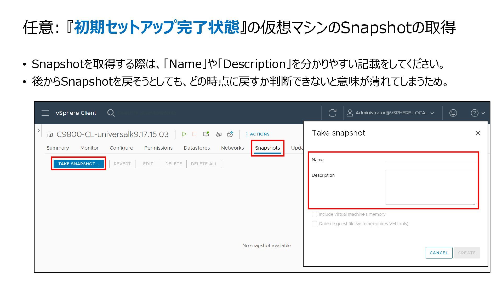 1K Clients 注記: Ultra-Low Profileで制限あり 2 vCPU, 6 GB RAM, 3 VNICs, 32 GB Disk ultra-low Ultra-Low Profileに該当します。 制約があるため、特段の理由が無い限りは 選ばないでください。 1K APs, 10K Clients 4 vCPU, 8 GB RAM, 3 VNICs, 32 GB Disk small WNCd数:1 1K APs, 10K Clients, High Throughput 7 vCPU, 8 GB RAM, 3 VNICs, 32 GB Disk small WNCd数:1 3K APs, 32K Clients 6 vCPUs, 16 GB RAM, 3 VNICs, 32 GB Disk medium WNCd数:3 3K APs, 32K Clients, High Throughput 9 vCPUs, 16 GB RAM, 3 VNICs, 32 GB Disk medium WNCd数:3 6K APs, 64K Clients 10 vCPUs, 32 GB RAM, 3 VNICs, 32 GB Disk large WNCd数:7 6K APs, 64K Clients, High Throughput 13 vCPUs, 32 GB RAM, 3 VNICs, 32 GB Disk large WNCd数:7 6K APs, 64K Clients, App Heavy 16 vCPUs, 40 GB RAM, 3 VNICs, 32 GB Disk large WNCd数:7 6K APs, 64K Clients, App Heavy High Throughput 19 vCPUs, 40 GB RAM, 3 VNICs, 32 GB Disk large WNCd数:7
