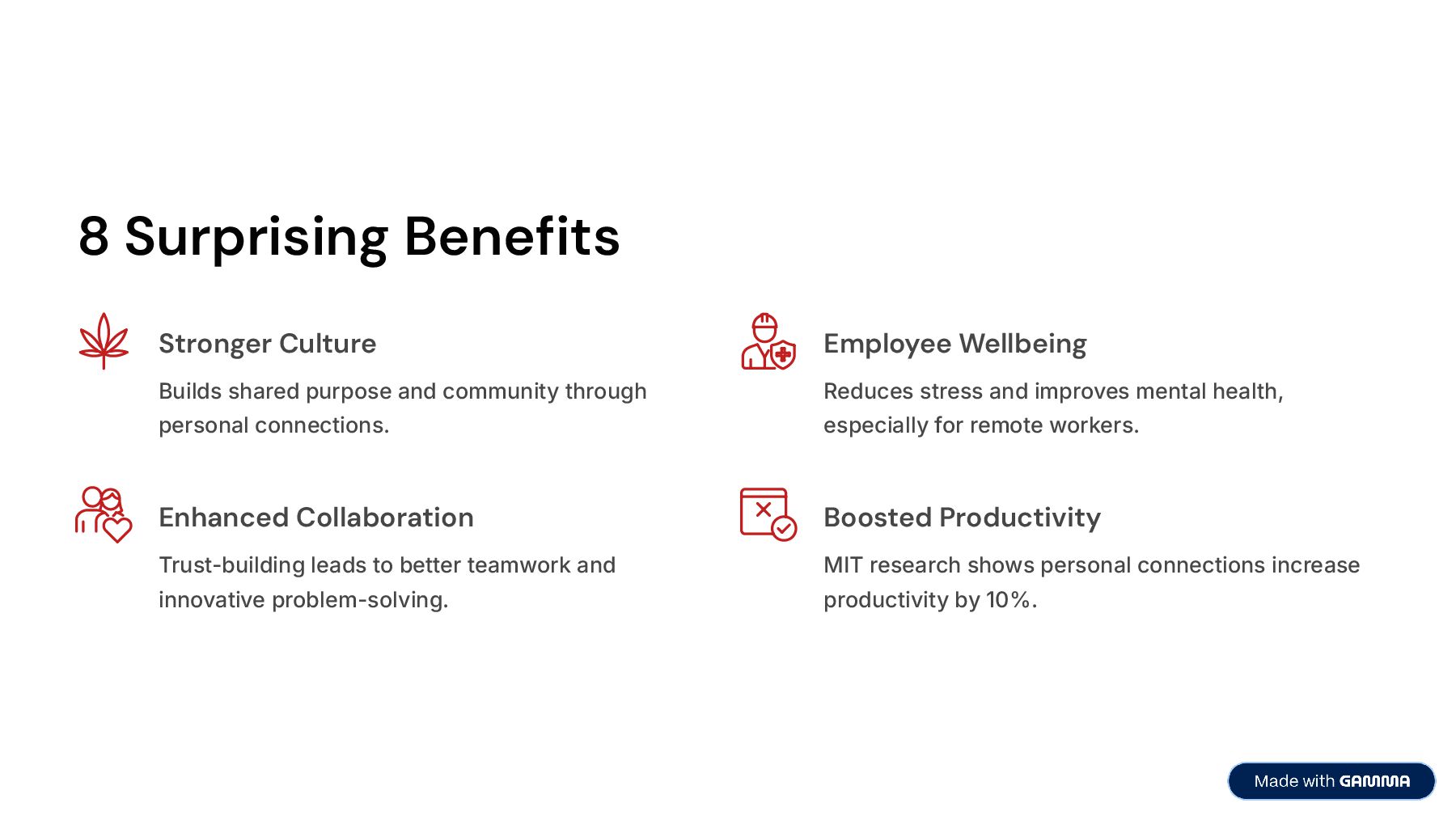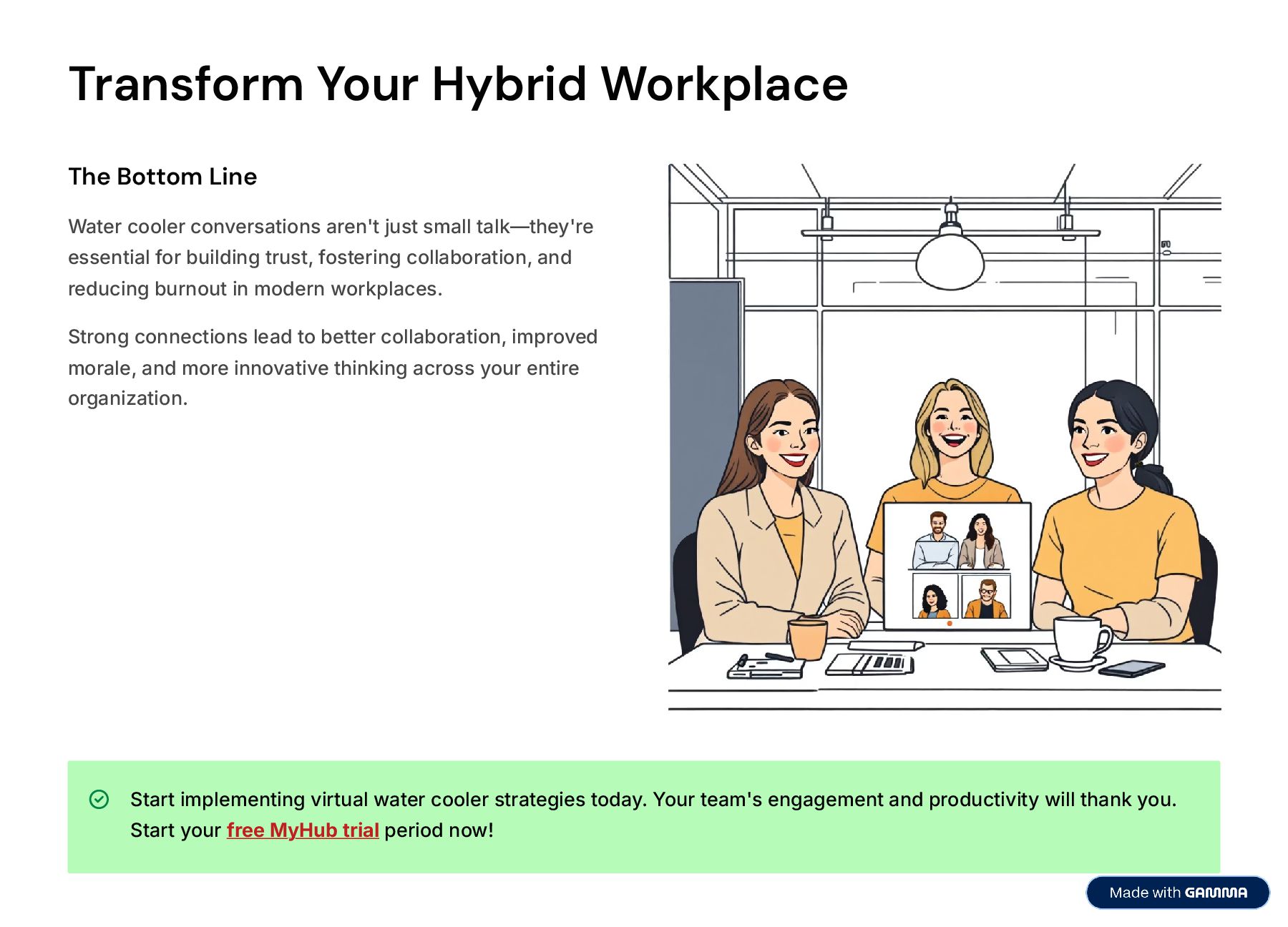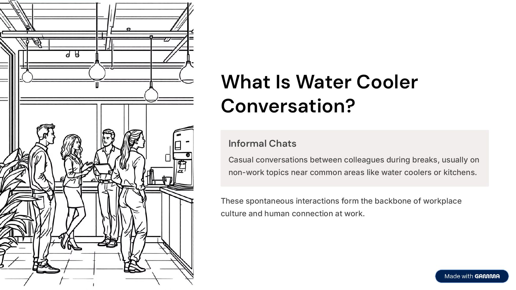 Perfect for HR leaders, team managers, and business owners, this slideshow demonstrates why water cooler conversations are more than a nice-to-have: they’re essential to building a resilient, collaborative, and thriving workplace.