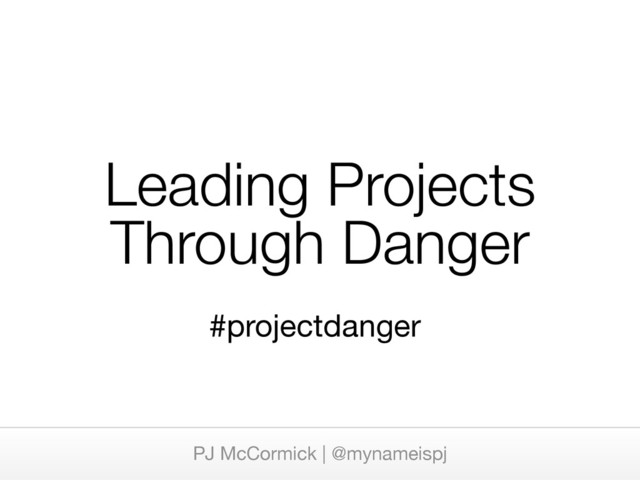 Leading Projects Through Danger talk variant given at LevelUp Con at Saratoga Springs, Oct 8 2014. http://levelupcon.com/