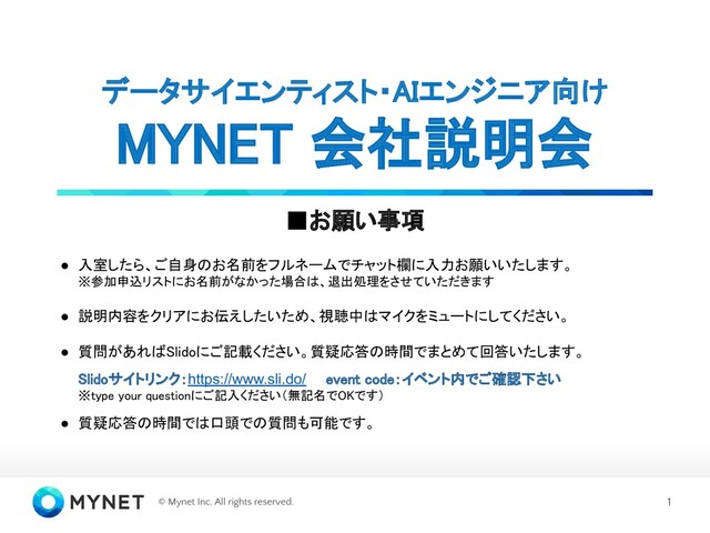 データサイエンティスト・AIエンジニア向け マイネットの2021年新卒採用説明会用資料です。