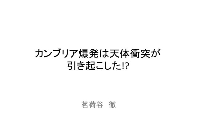 カンブリア爆発は天体衝突が 引き起こした!? 茗荷谷 徹