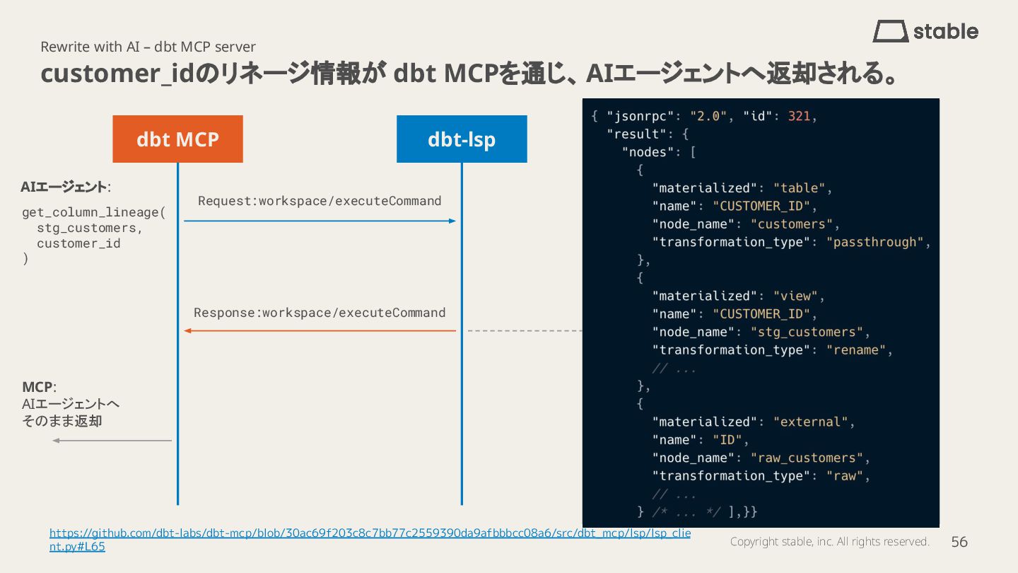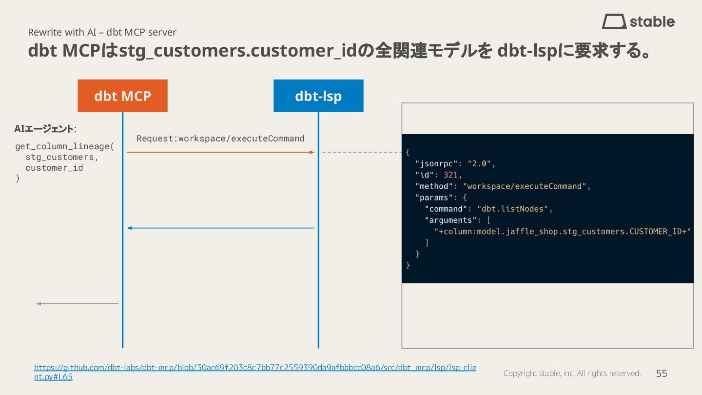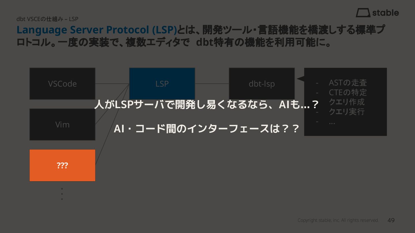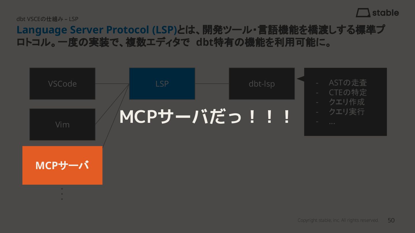 - Rewrite with AI (dbt MCP Server): 言語サーバープロトコル(LSP)の技術資産が、dbt MCP Serverを通じてAIエージェントの開発体験向上にも貢献している仕組み 。