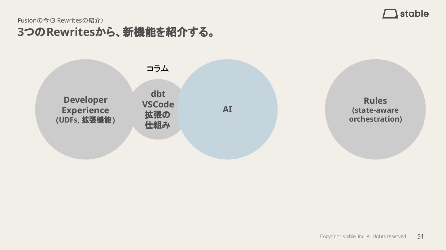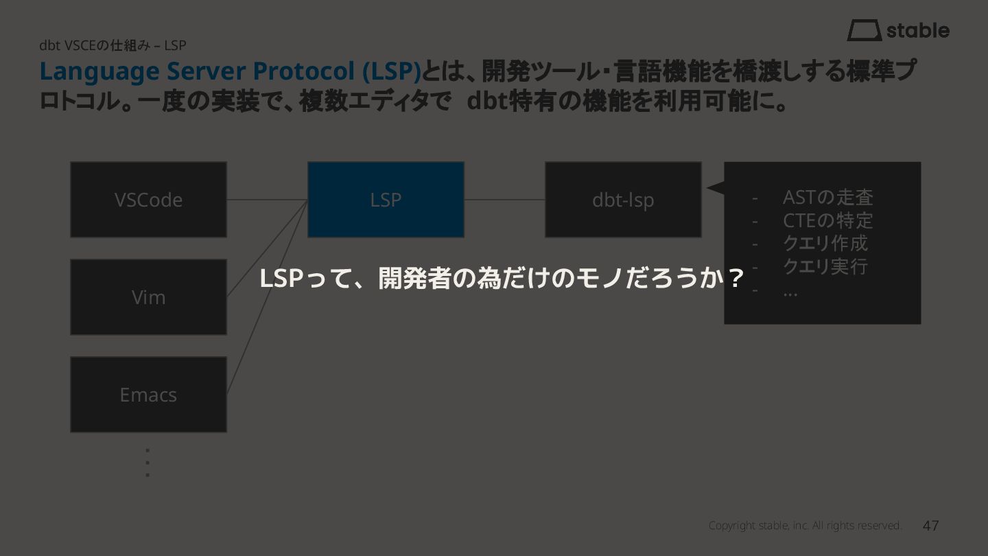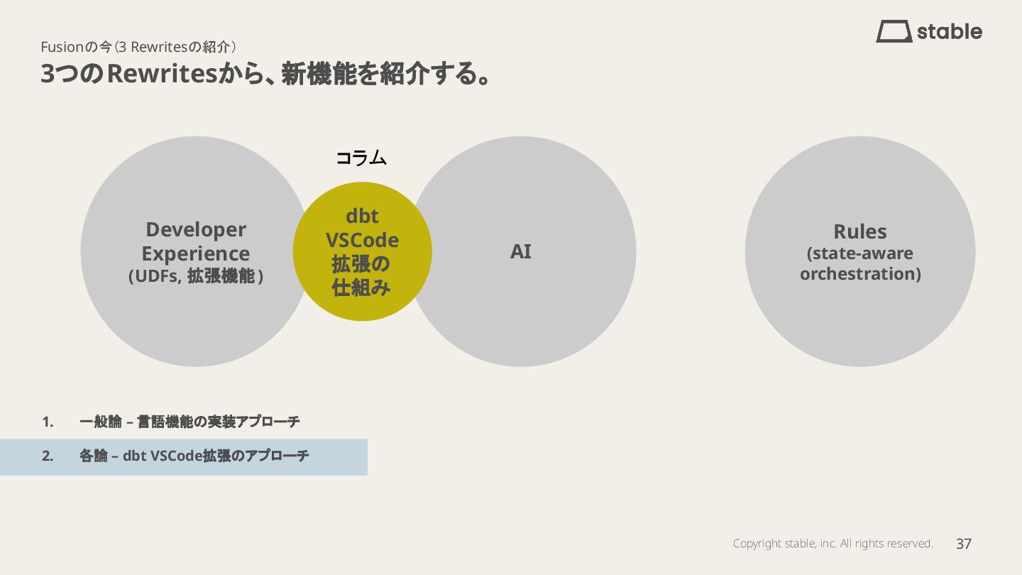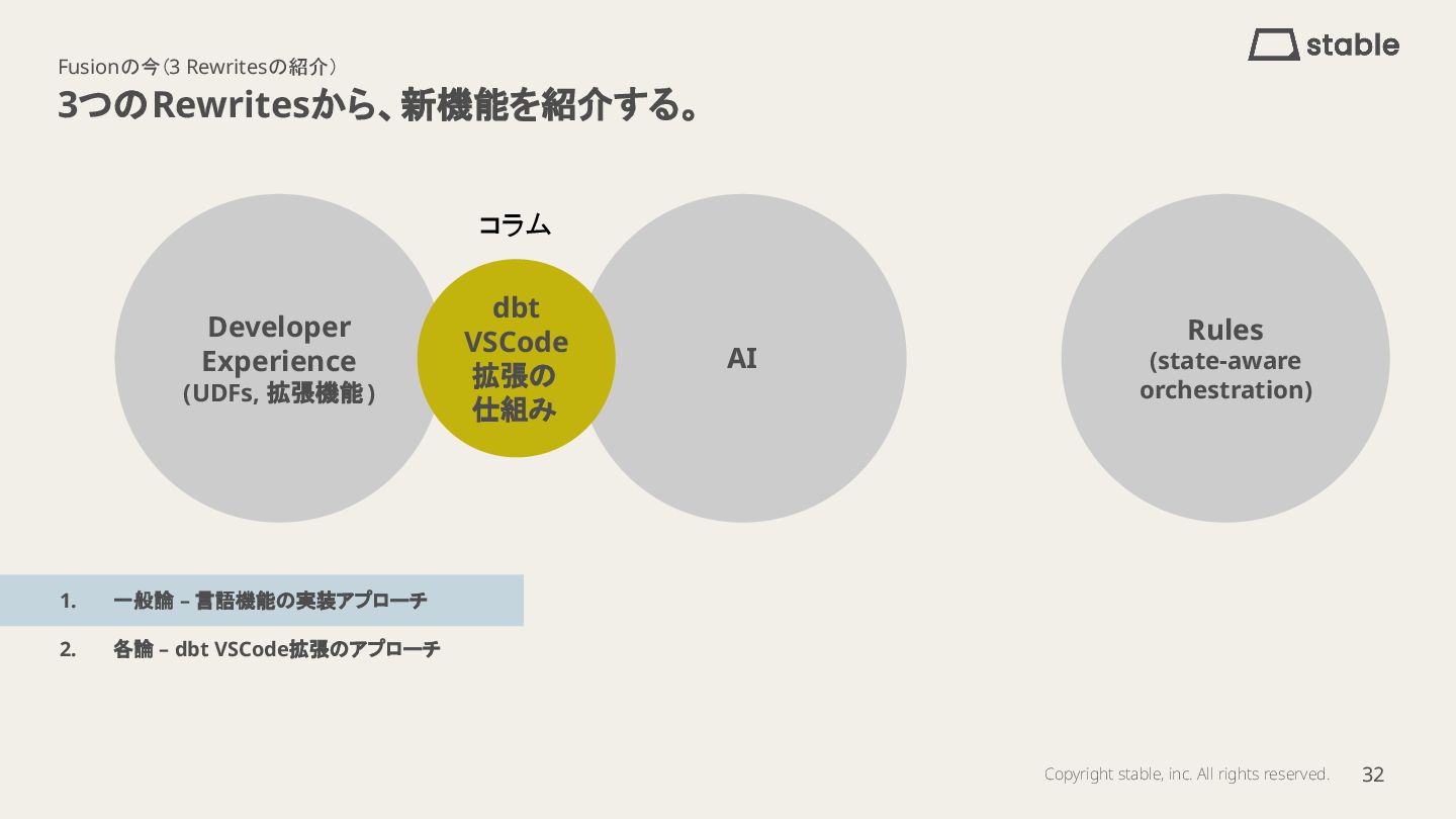- Rewrite with AI (dbt MCP Server): 言語サーバープロトコル(LSP)の技術資産が、dbt MCP Serverを通じてAIエージェントの開発体験向上にも貢献している仕組み 。