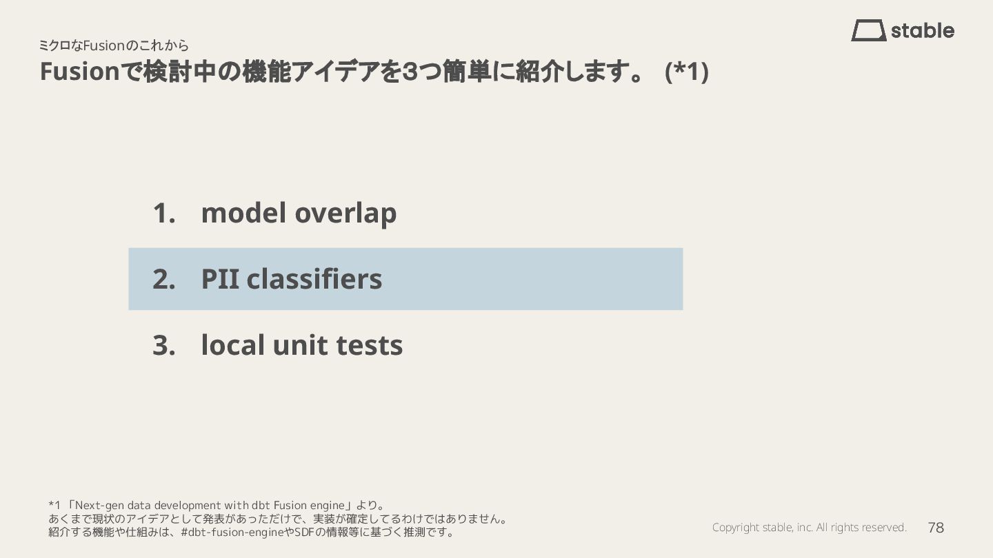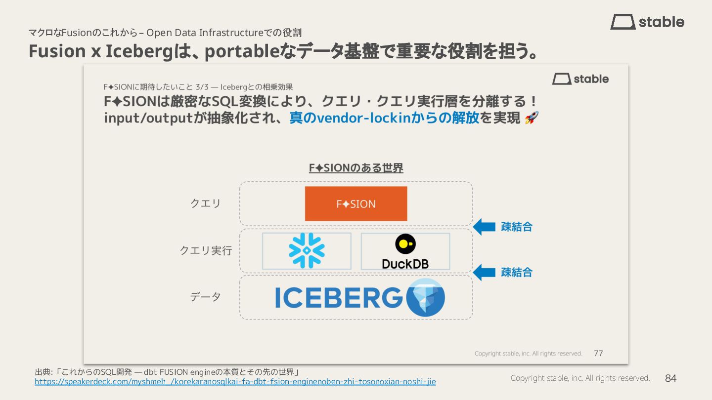 さらに、model overlapやPII classifiersなどの将来の機能アイデア 、およびOpen Data Infrastructure構想におけるFusion x Icebergの重要な役割 についてもご紹介します。