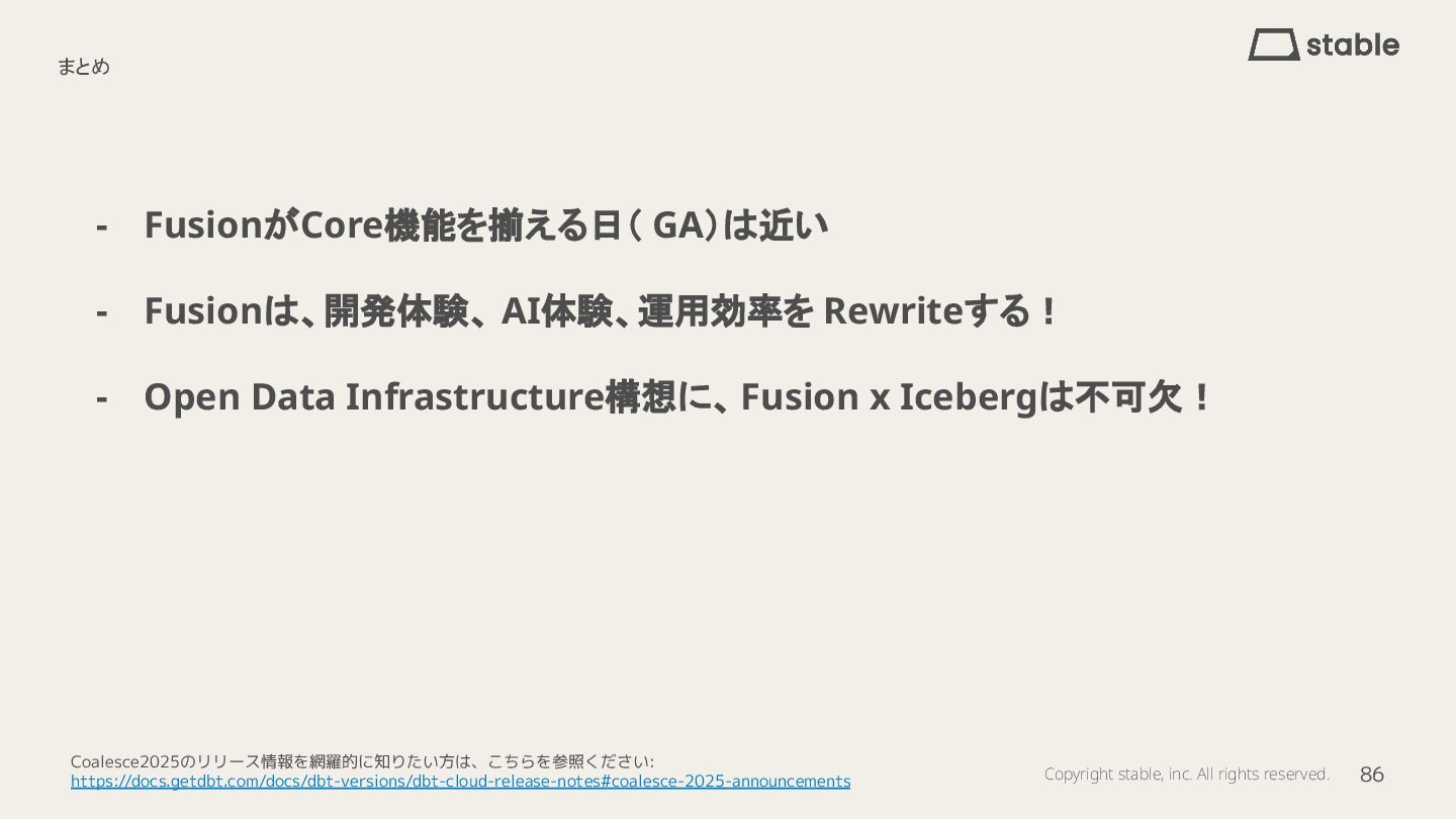 2025年10月22日開催の「Tokyo dbt Meetup #17」で発表された、dbt Fusion engineに焦点を当てた「Coalesce 2025」の総まとめです 。